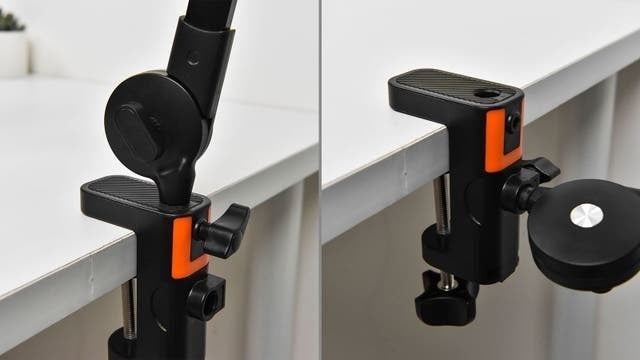クランプの内部にはシリコンパッドが付属し、摩擦力を増加させ、しっかりと固定するだけでなく、使用時にテーブルを傷つけないようにも保護できます。