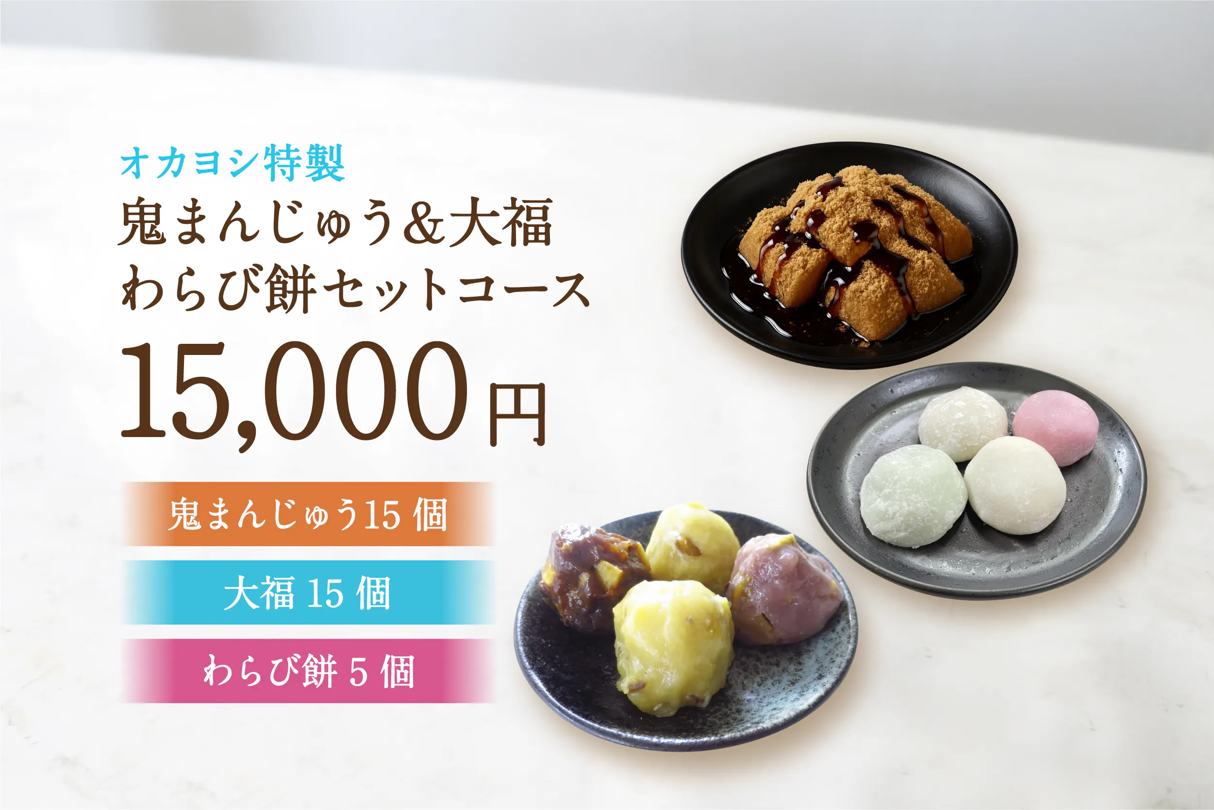 ●鬼まんじゅう&大福15個ずつ、わらび餅5個セットコース