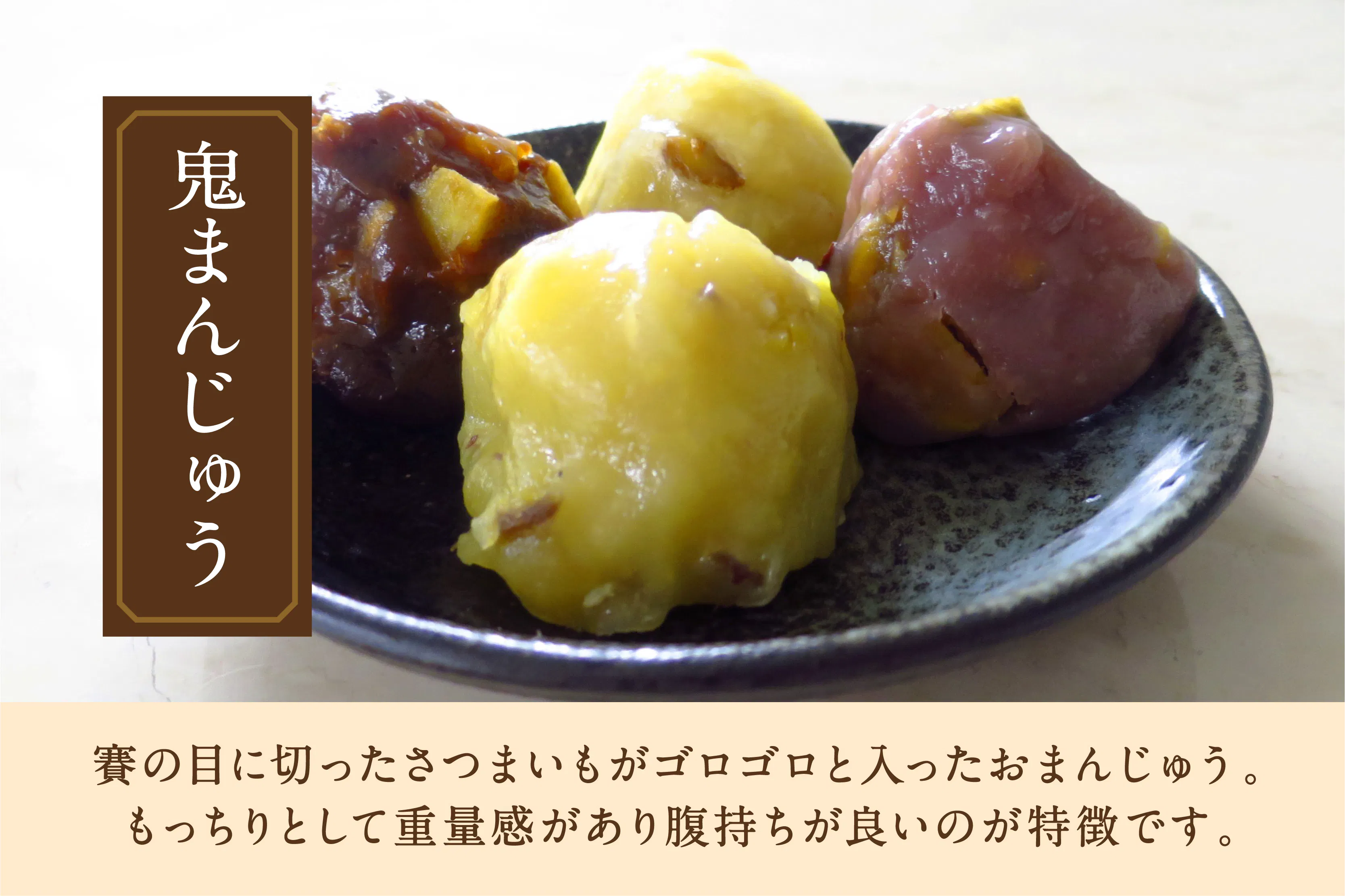 角切りのさつまいもの角が突き出て見える形状が、鬼のツメや金棒をイメージさせたことから「鬼まんじゅう」と言われるようになったのが定説とされています。