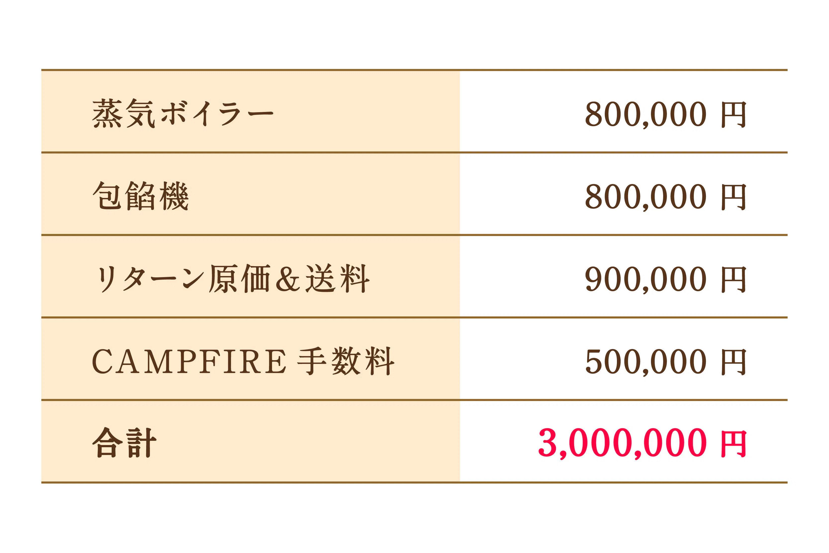 蒸気ボイラーや包餡機など、和菓子づくりに欠かせない設備が限界を迎えています。
