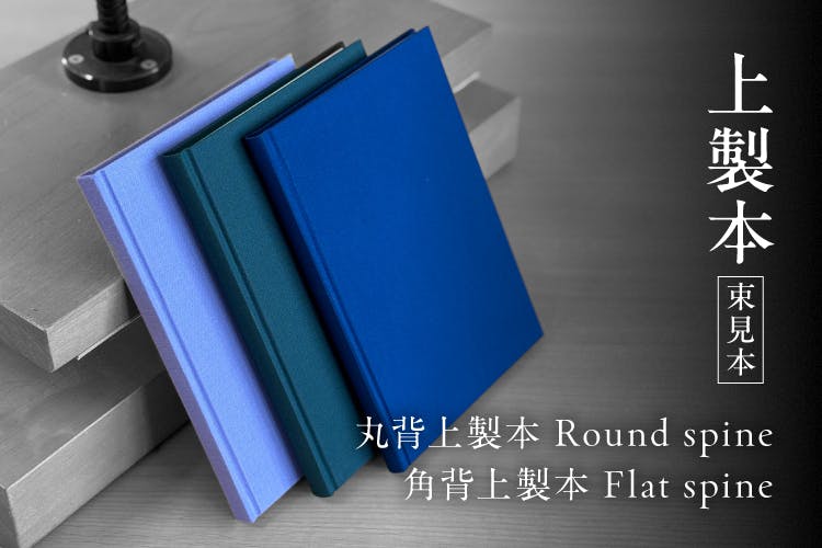 本の背の部分に丸みがある製本装幀が「丸背上製本」で頁数が多い本に使われやすい製本仕様です。
