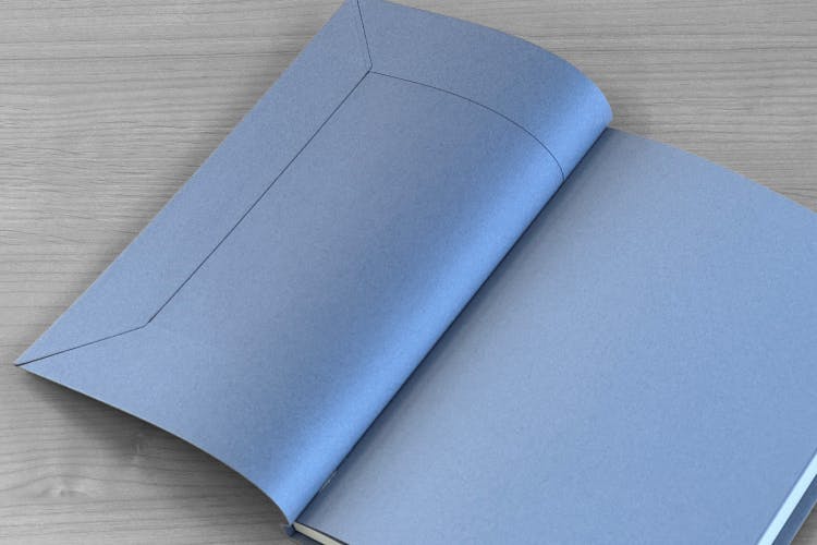 本を開くと本体の片側だけが表紙について、背中が見えるようになっている製本です。