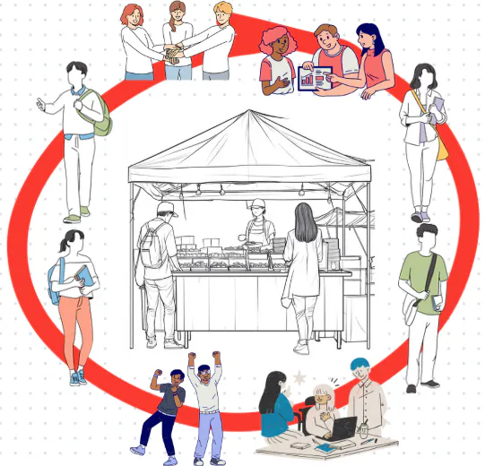 模擬店運営はメンバーどうしの仲が深まりやすいことが特徴です。お客様に商品を手渡すまでに多くのステップを踏んでおり、その各ステップで多くの人手が必要となり、それぞれのメンバーの繋がりが必須になるためです。模擬店運営はこの企画のビジョンにぴったり合っているのです。