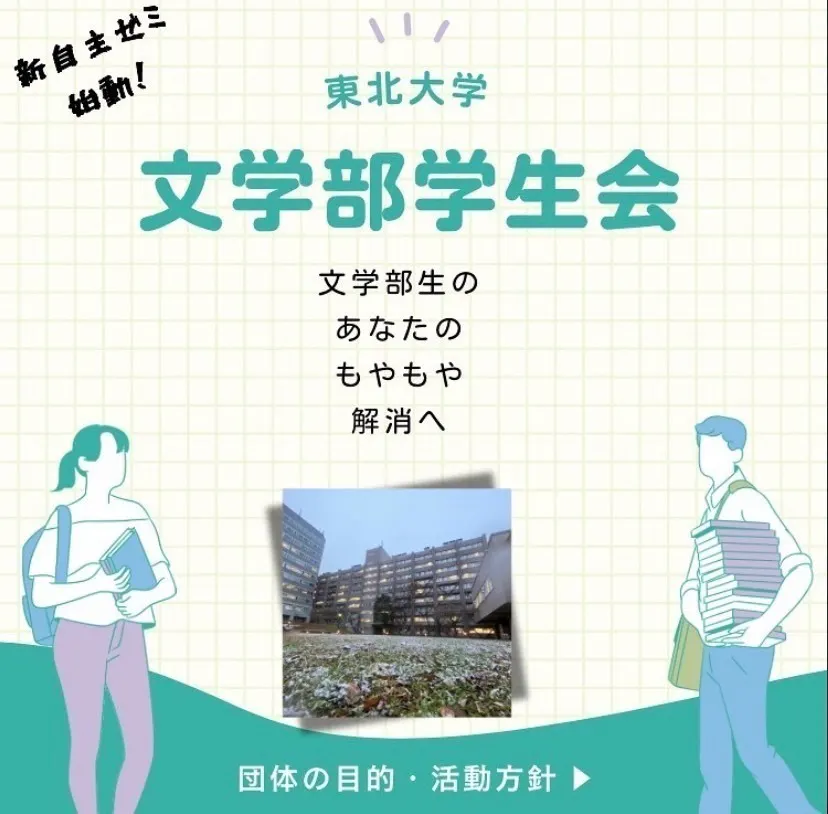 私たちは東北大学文学部学生会です。2024年12月に文学部の有志学生により発足し、現在は15名のメンバーで活動しています。
