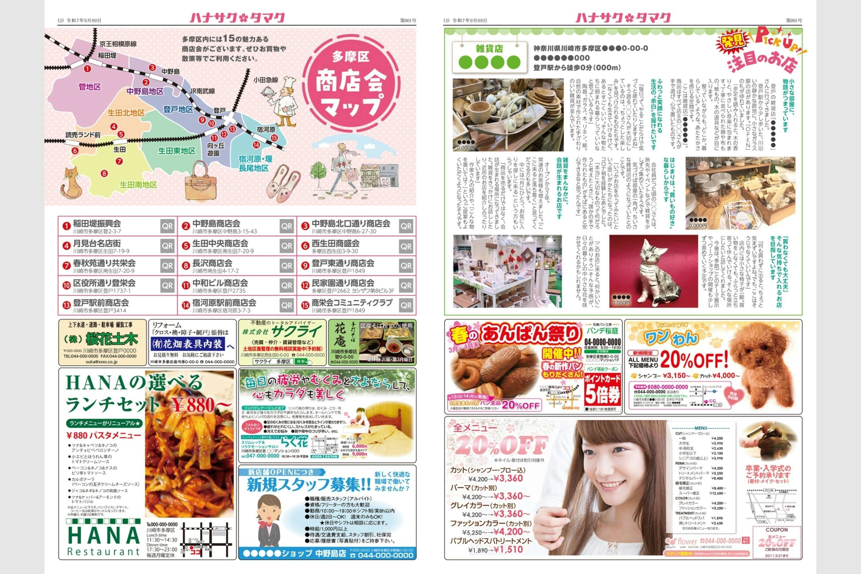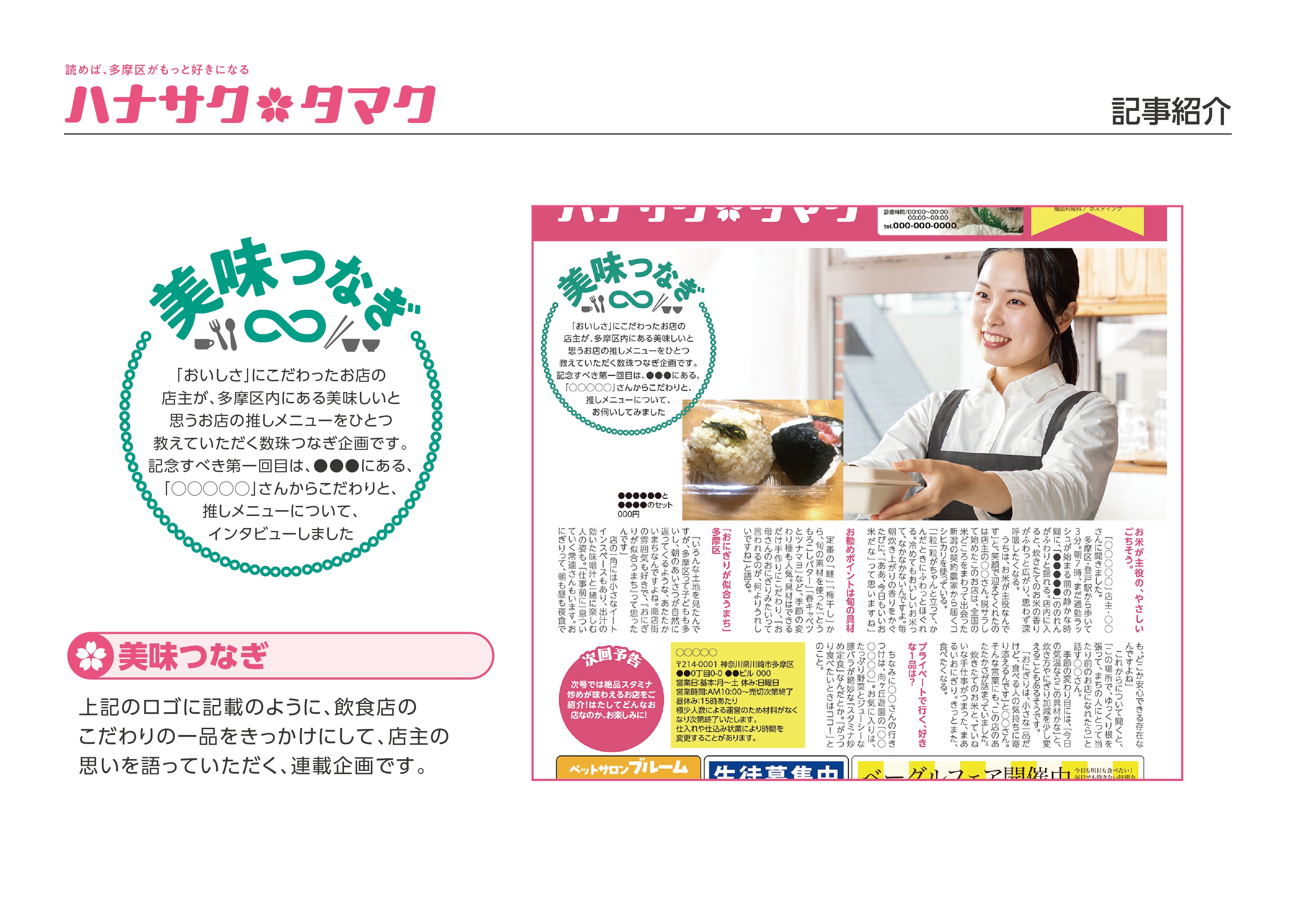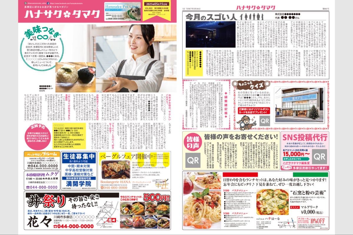 を掲載し、「読めば多摩区がもっと好きになる」 そんなフリーペーパーを目指しています。