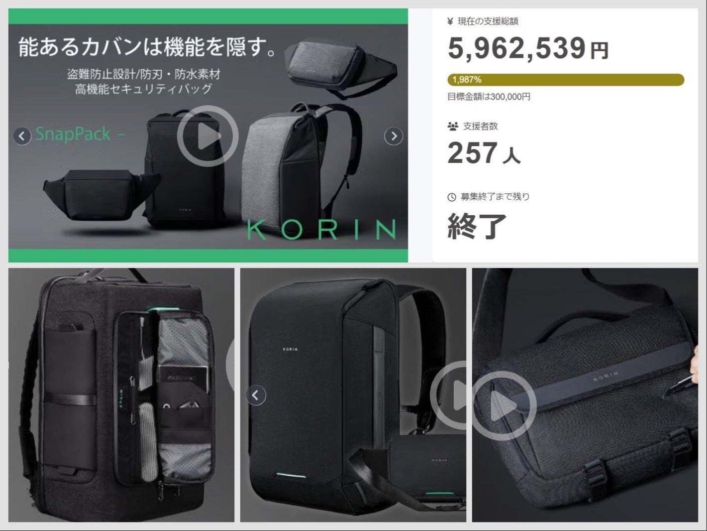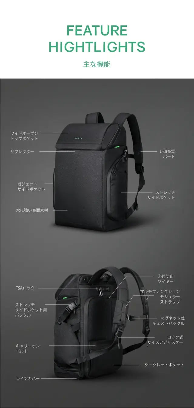 KorinDesignは【安全安心を担ぐ防犯対策バックパック】の基本コンセプトをもとにClickPack、FlexPack、HiPack、FlipPack、ClickPack X、SnapPack、Travlo、Hubpackなどをリリースし、大変ご好評頂きました。