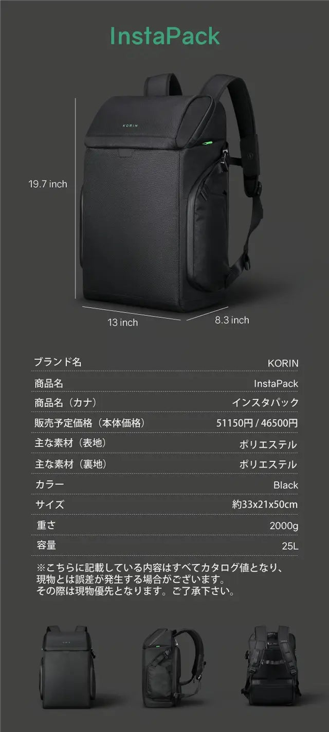世界でご好評いただいているKorinDesigの最新作「InstaPack」です。