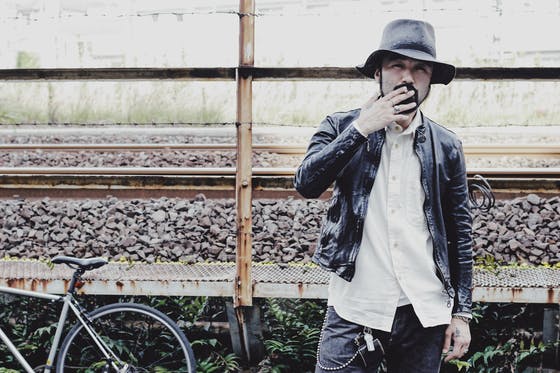 革ジャンでありながら、スタイリッシュで清潔感が出る。
