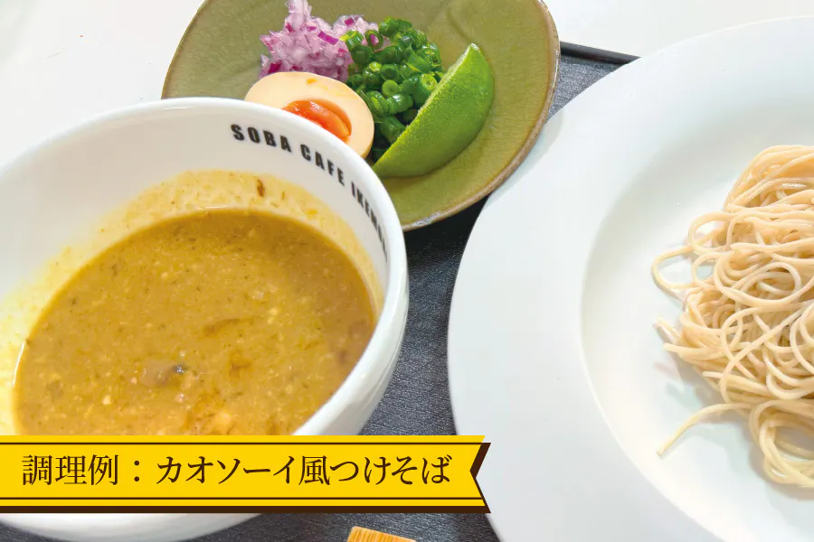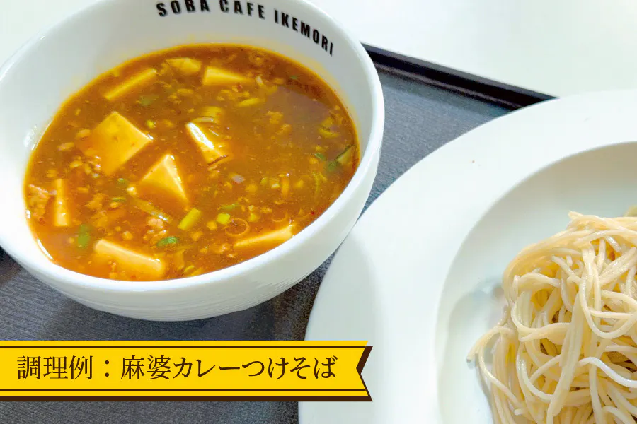 こちらは「幸せのだしカレーソースレシピコンテスト・そば以外部門大賞受賞」の麻婆カレーつけそば。レシピコンテストでは麻婆カレー丼での受賞でしたが、池森はやはりそばでアレンジしちゃいます!