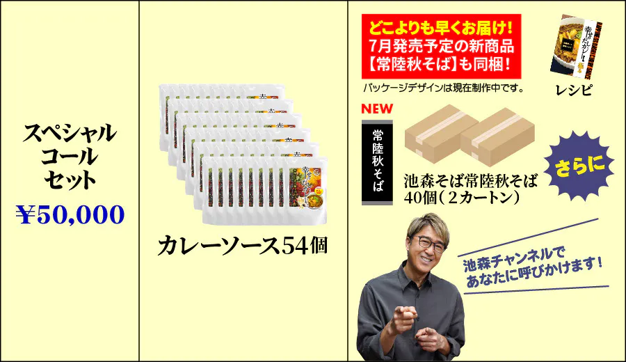 この度、大好評をいただき完売した池森そばの人気商品「幸せのだしカレーソース」が、さらにパワーアップして登場!