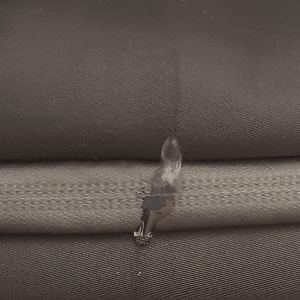 そのため、実際のところはどうなるのか、手元のカバンのファスナーにスポイトで水を垂らしてみました。すると、②のファスナーの項目の動画のように、水をよく吸収していました。ご自身のリュックが止水ファスナーを使用していないものでしたら、試して頂く価値はあるかもしれません。