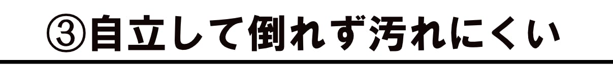 外で下に置いた時にすぐに倒れてしまうと、そこで汚れたりしてしまいます。そのため、自立する作りにしています。