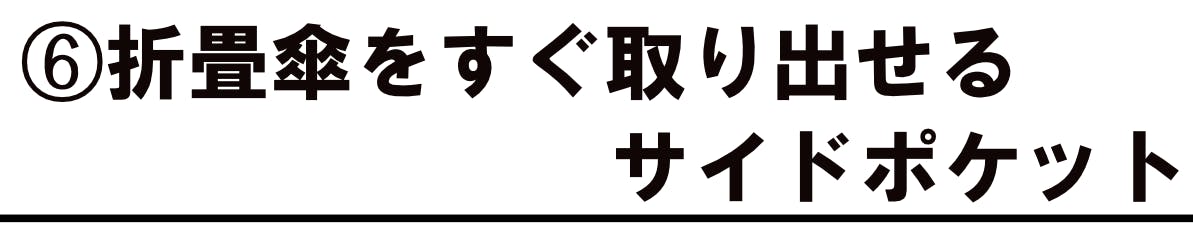 サイドポケットは左右に付いていますので、折畳み傘は利き手で取りやすい方に入れられます。また空いた方のサイドポケットには、スマホなどお好きなものを入れることができます。