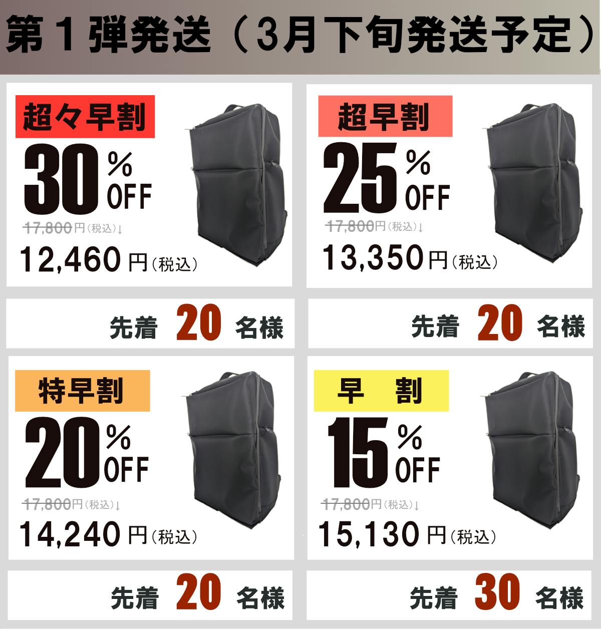 ●引渡し時期: 各リターン詳細に記載の発送予定月を引き渡し時期とします。但し、開発・生産状況によって遅れが生じる場合がありますのでその際は当プロジェクトページ内の「活動報告」または購入者へのメール等で連絡します。