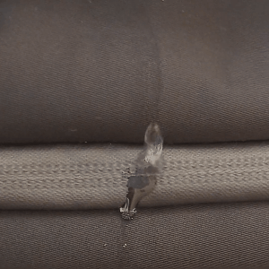 そのため、実際のところはどうなるのか、手元のカバンのファスナーにスポイトで水を垂らしてみました。すると、②のファスナーの項目の動画のように、水をよく吸収していました。ご自身のリュックが止水ファスナーを使用していないものでしたら、試して頂く価値はあるかもしれません。