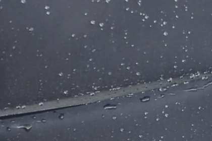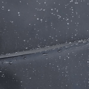 その点、動画の通りこのリュックでは、小さな水滴は玉状になって表面に残っているものの、しっかり水を弾いていて湿りも残っていません。トントントンと叩くと、大部分の水滴は下に落ちます。