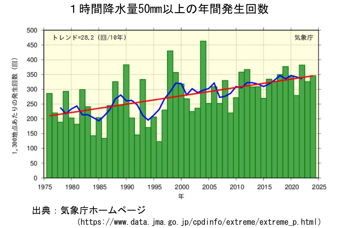 ちなみに、ゲリラ豪雨は明らかに増えていて、1980年ごろと比べると約1.7倍の頻度になっています。そのため、急な雨には遭いやすくなっています。