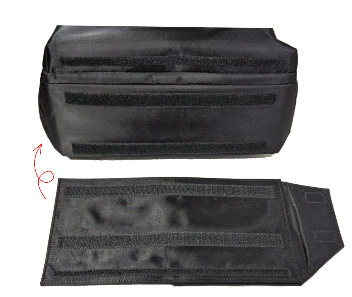 また白矢印の場所にマジックテープ®が付けられていますので、非使用時には折畳めます。