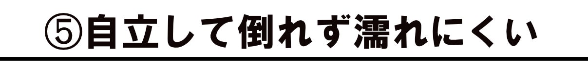 外で下に置いた時にすぐに倒れてしまうと、そこで濡れたり汚れたりしてしまいます。そのため、自立する作りにしています。
