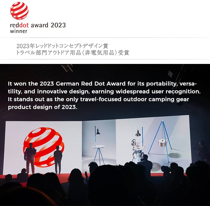 世界3大デザイン賞であるドイツのRed dot賞2023受賞した多機能キャンプギアのHALOXEENを日本で先行販売し、キャンパーに向けて広めていきたい