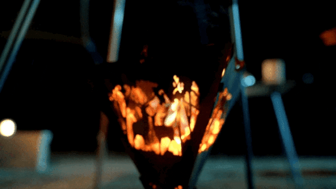 付属のチェーンとカラビナとワイヤーを使用することにより、上からぶら下げることができて、おしゃれな焚き火台にもなります。