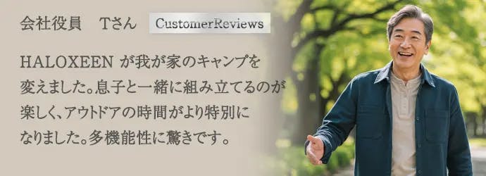 『HALOXEEN』が、あなたのキャンプライフを変え、人生をより豊かにする存在になれたら、これ以上の喜びはありません。大自然の中で、本当の自由と満足感を味わってください。それが、私たちの願いです。