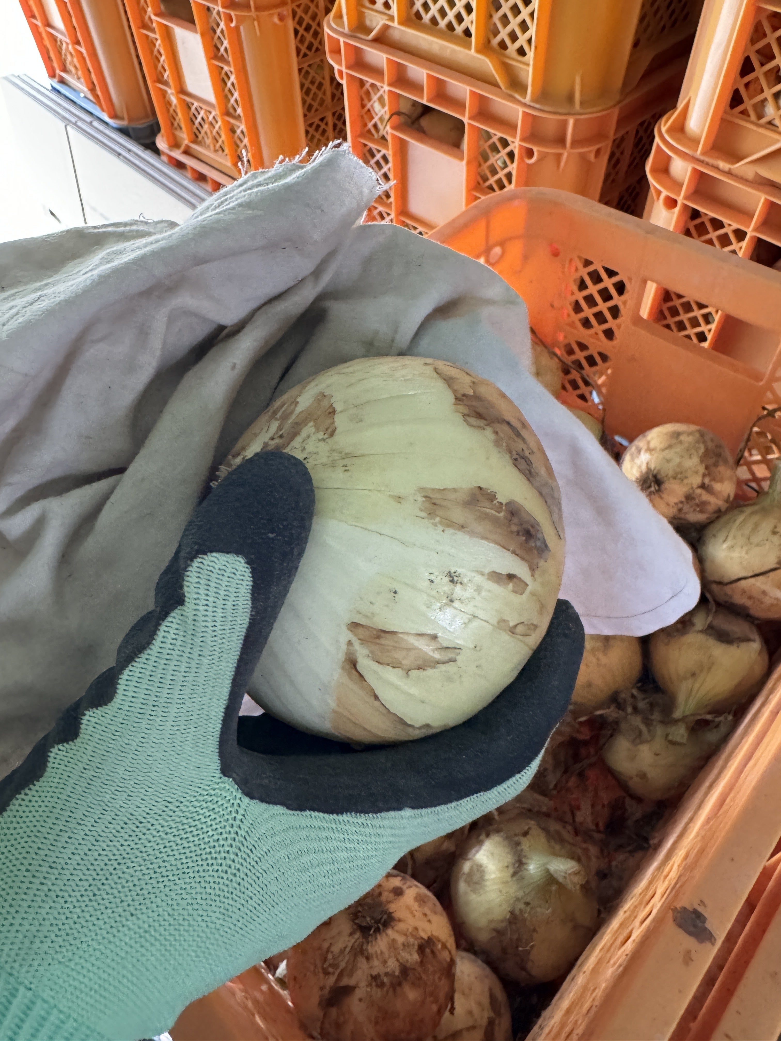 玉ねぎを植える所から、収穫、梱包をほとんどを手作業で行なっております。