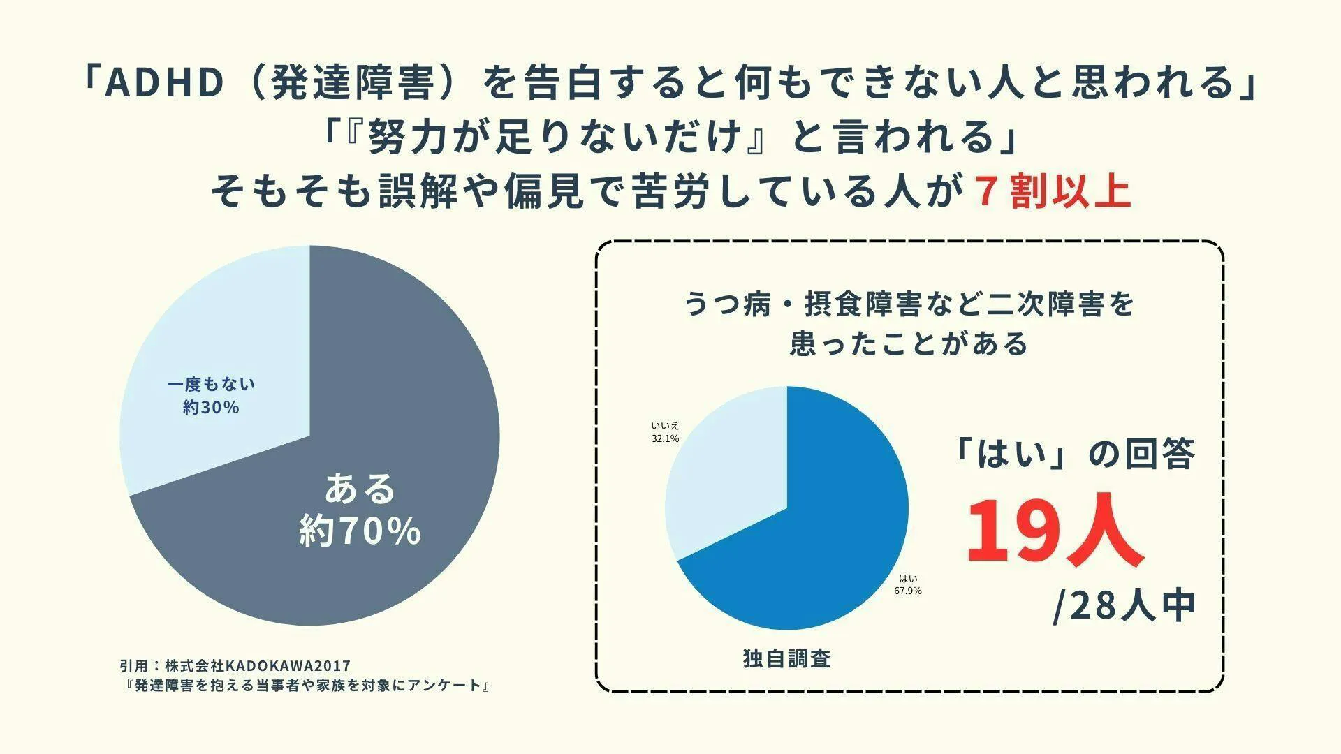 こうした“できなさ”ばかりが目立ってしまい、自信を失ってしまう人も少なくありません。事実、多くの当事者が誤解や偏見に苦しみ、二次障害に悩むこともあります。