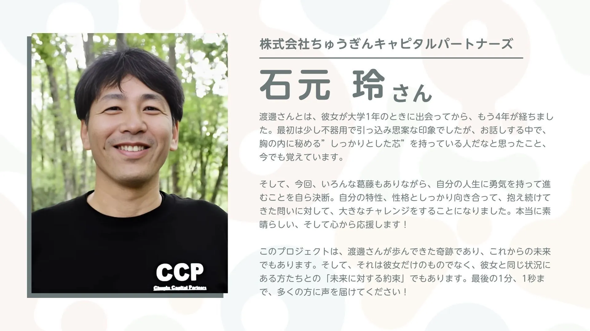 私は、この挑戦を、単なる「支援者」としてではなく、未来を「共につくる“共創者”」として、皆さんと一緒に進めていきたいのです。