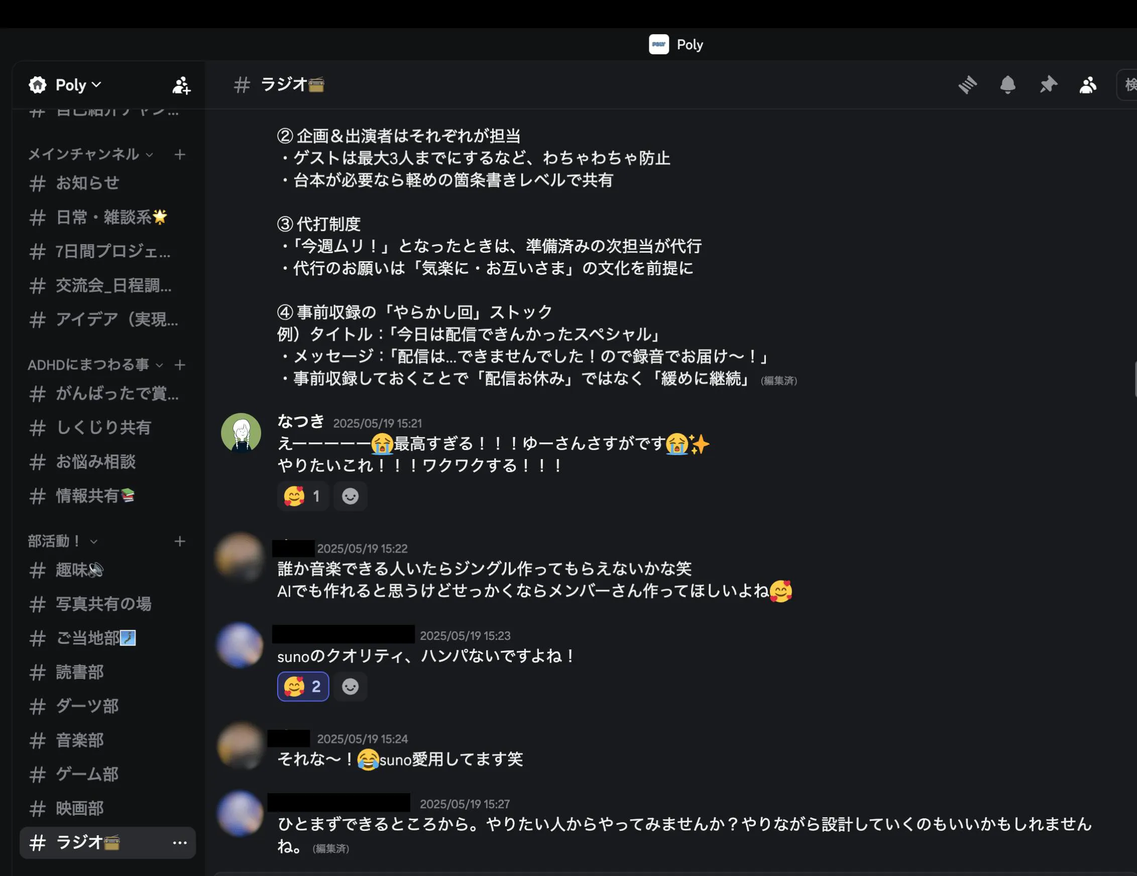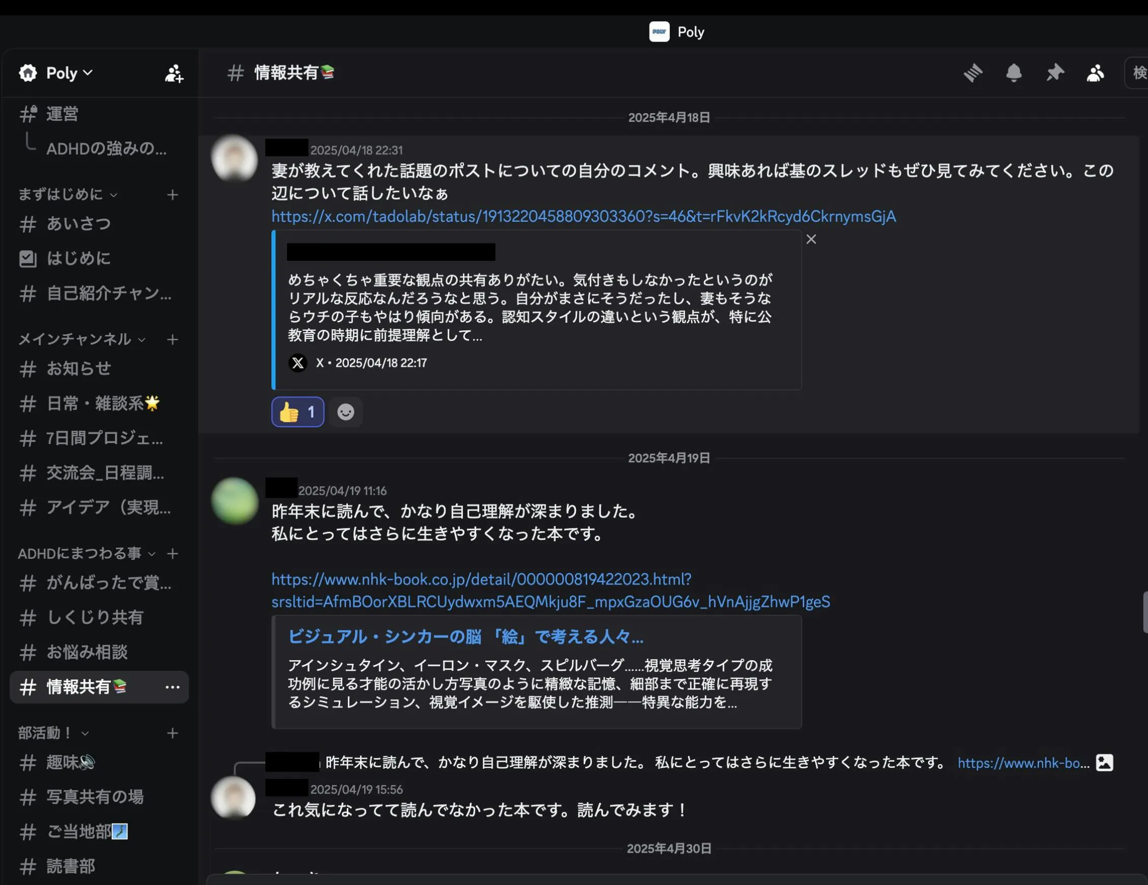 この心理的安全性を、私たちは、ADHD当事者による共創型コミュニティ「Poly」を運営し、メンバー同士が安心して繋がり、学び、挑戦できる循環することで、育んできました。