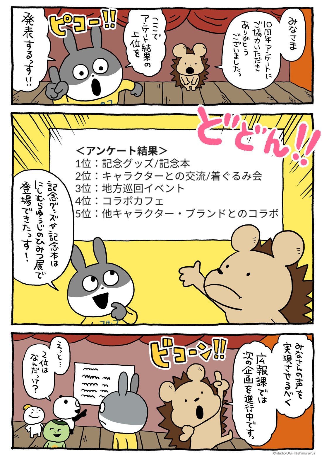 今後、事前に皆さまから「10周年イベントのアンケート」にていただきましたアイデアを広報課で検討させていただき、実現していく予定です。