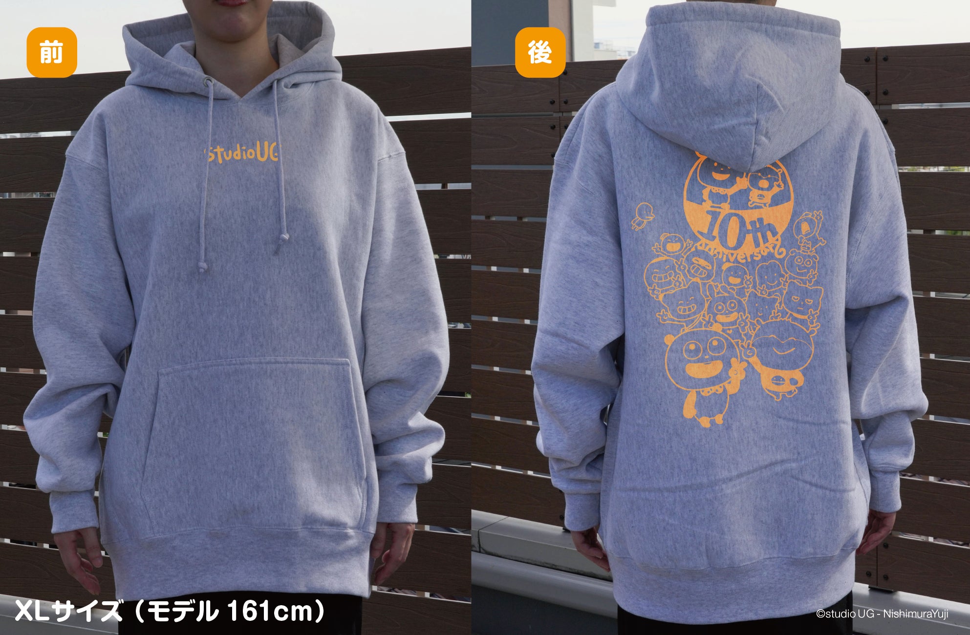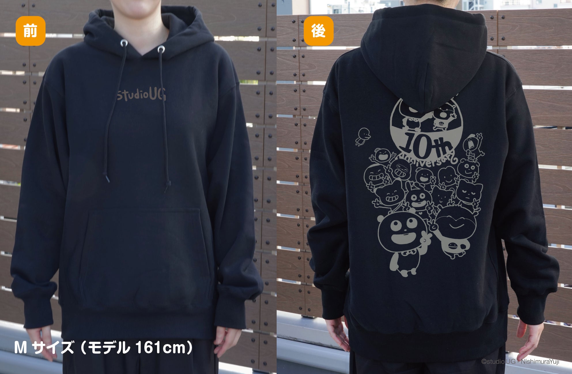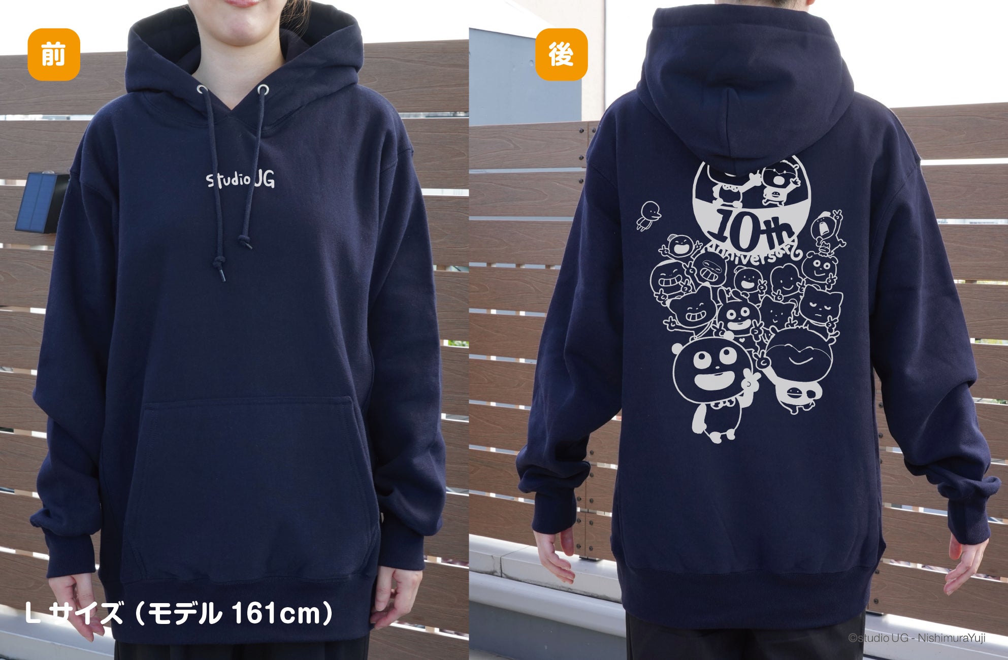 胸には存在感のあるロゴ刺繍をあしらい、背面は10周年のイラストを大きめにプリント!