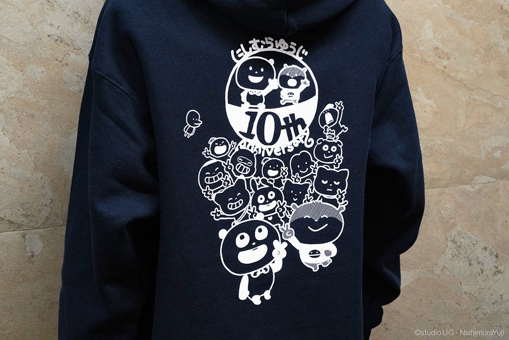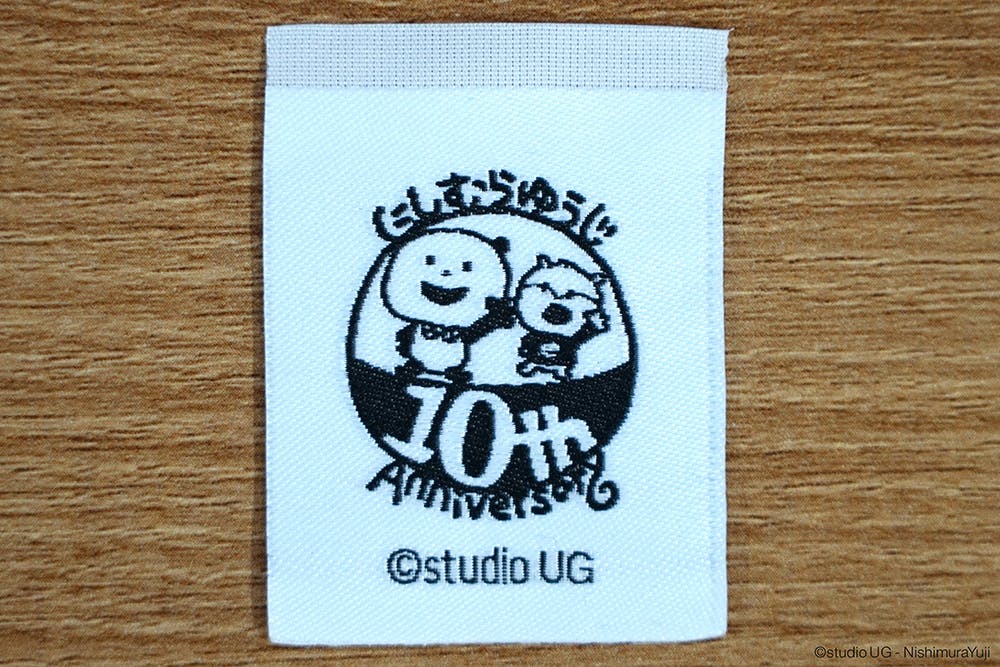 パーカーのタグには10周年のロゴをあしらいました