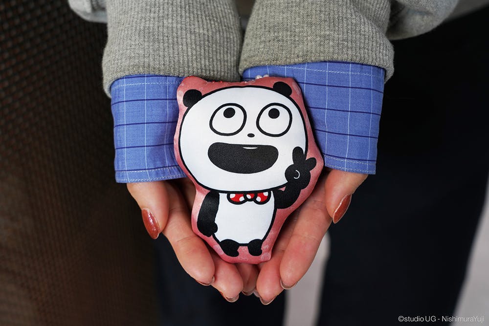 フラットぬいぐるみキーホルダーは手のひらサイズで光沢感のある生地で作りました