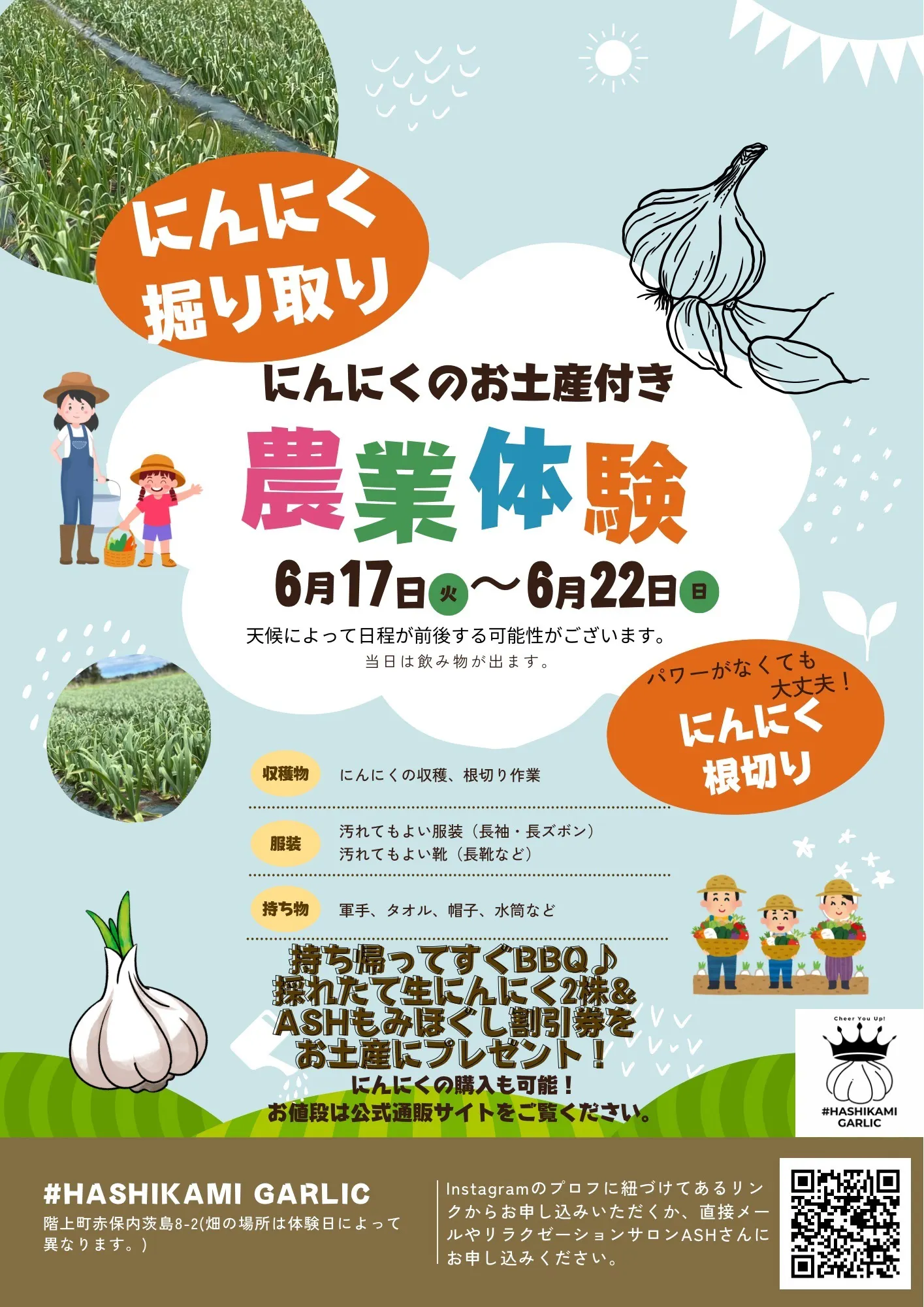 2025/05/19 07:50いよいよ来月は収穫です!みんなで土いじりしませんか?にんにくを掘り取りしたり、にんにくの根切りをしたり…掘り取りは自分がメインでいます!根切りの方にはASHの能登さんがいる予定ですよ。そして、掘り立ての生にんにくは2株お持ち帰りいただけます。そのままご自宅でBBQなどで楽しんでください☆時間や詳細はインスタグラムのリンクにフォームを貼っているのでそちらからチェックしてくださいね! もっと見る