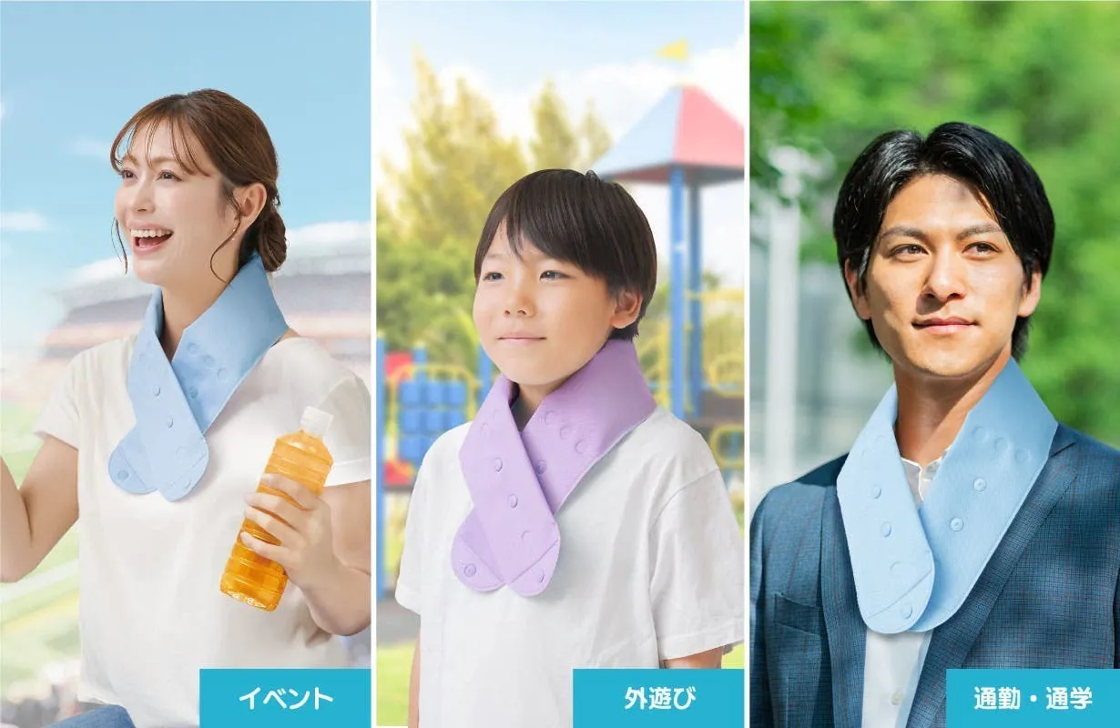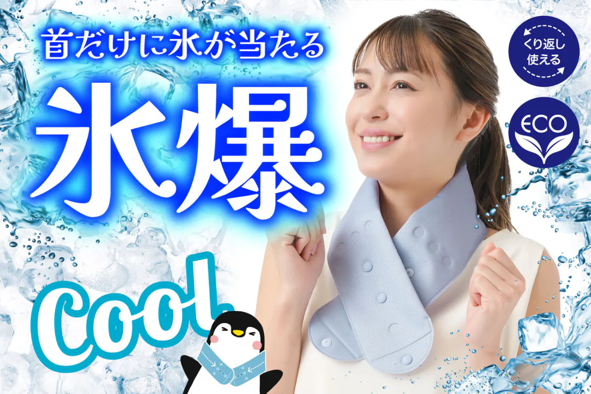 毎日の仕事や家事、学校生活...暑いからって立ち止まるわけにはいきませんよね。そこで、ただ、冷たいだけでなく、首元にしっかりと氷が当たり、肌あたりもサラッとして気持ちいい『エコクール 首に巻けるアイスバッグ』を開発しました!