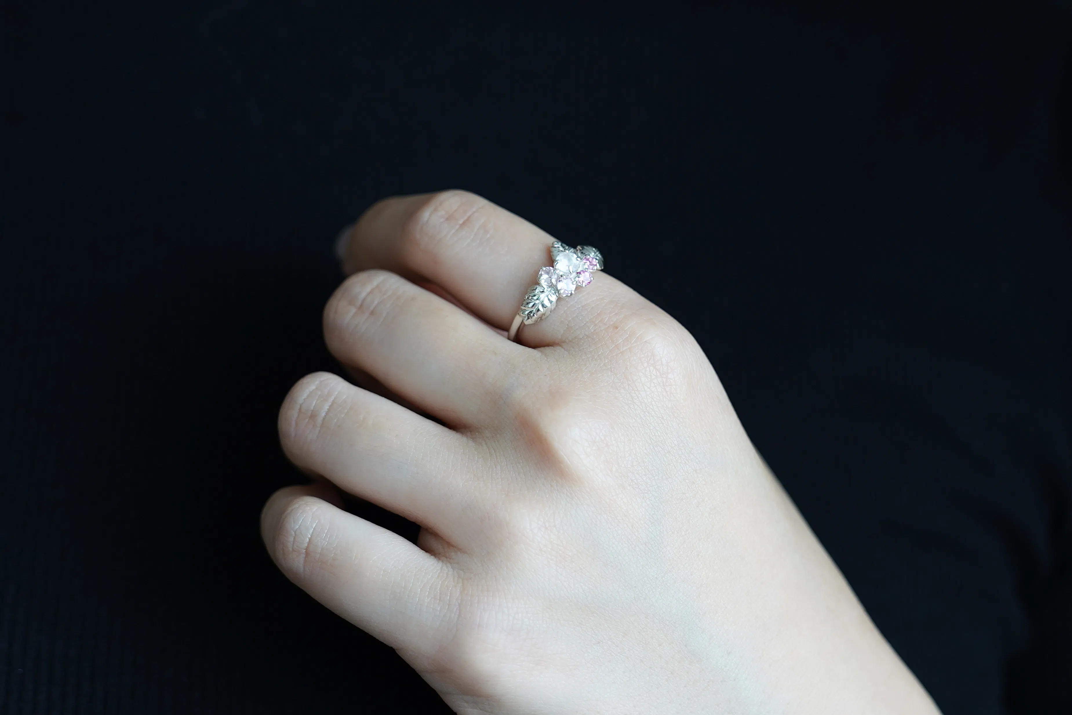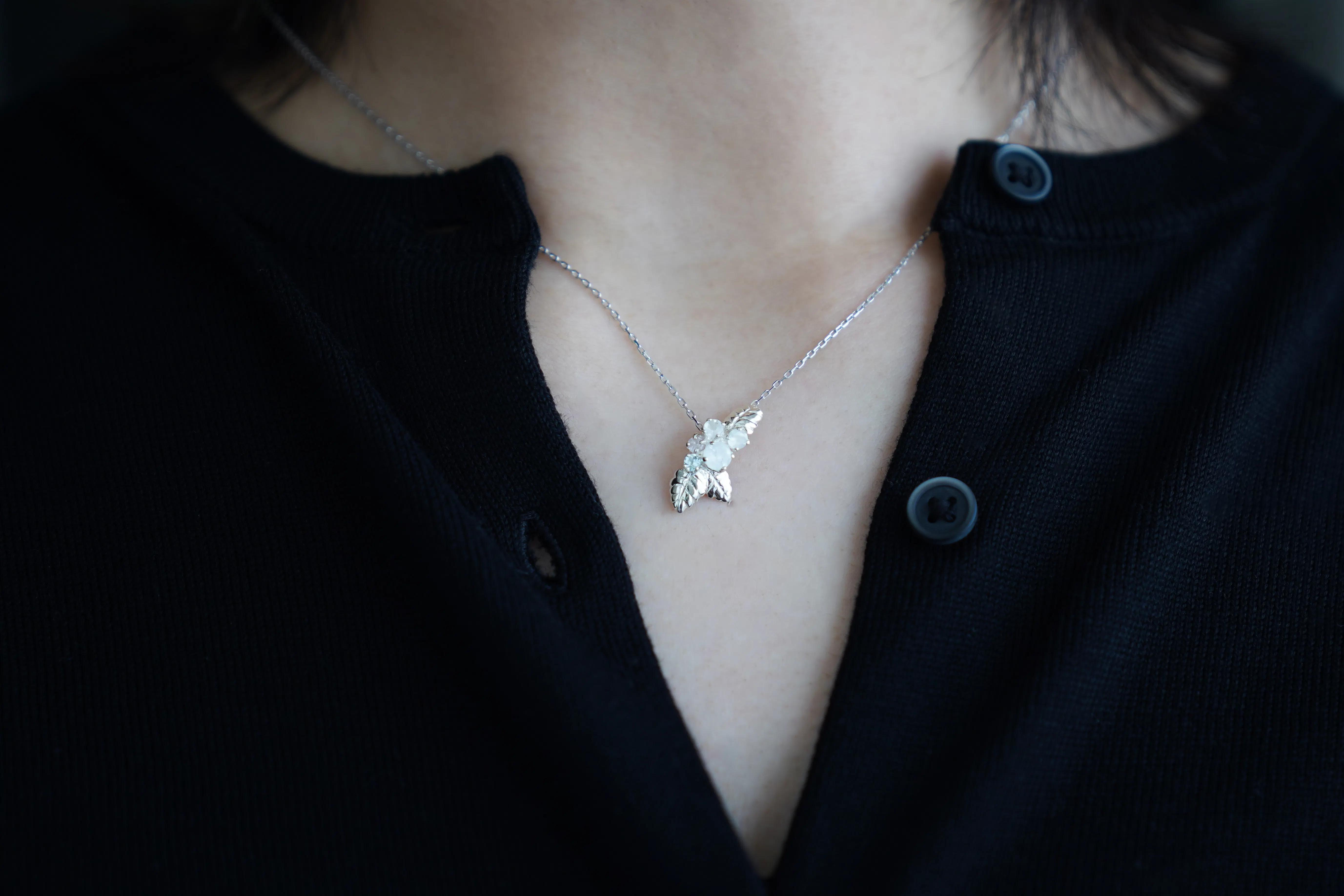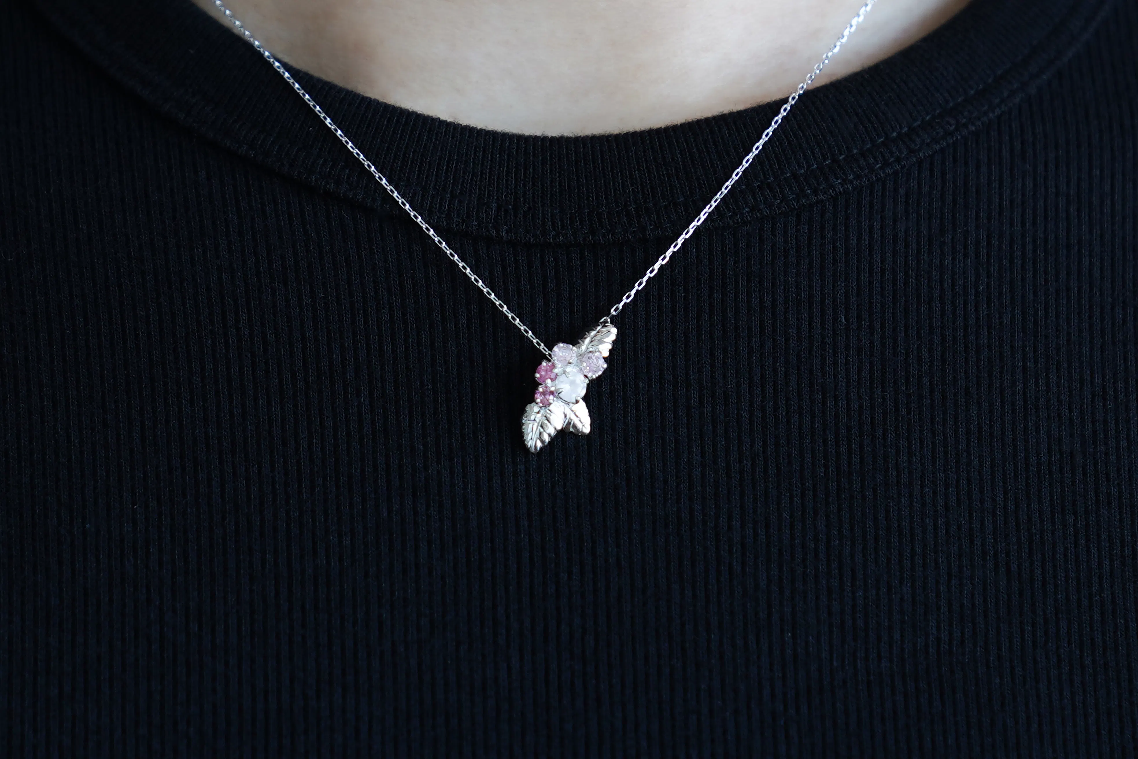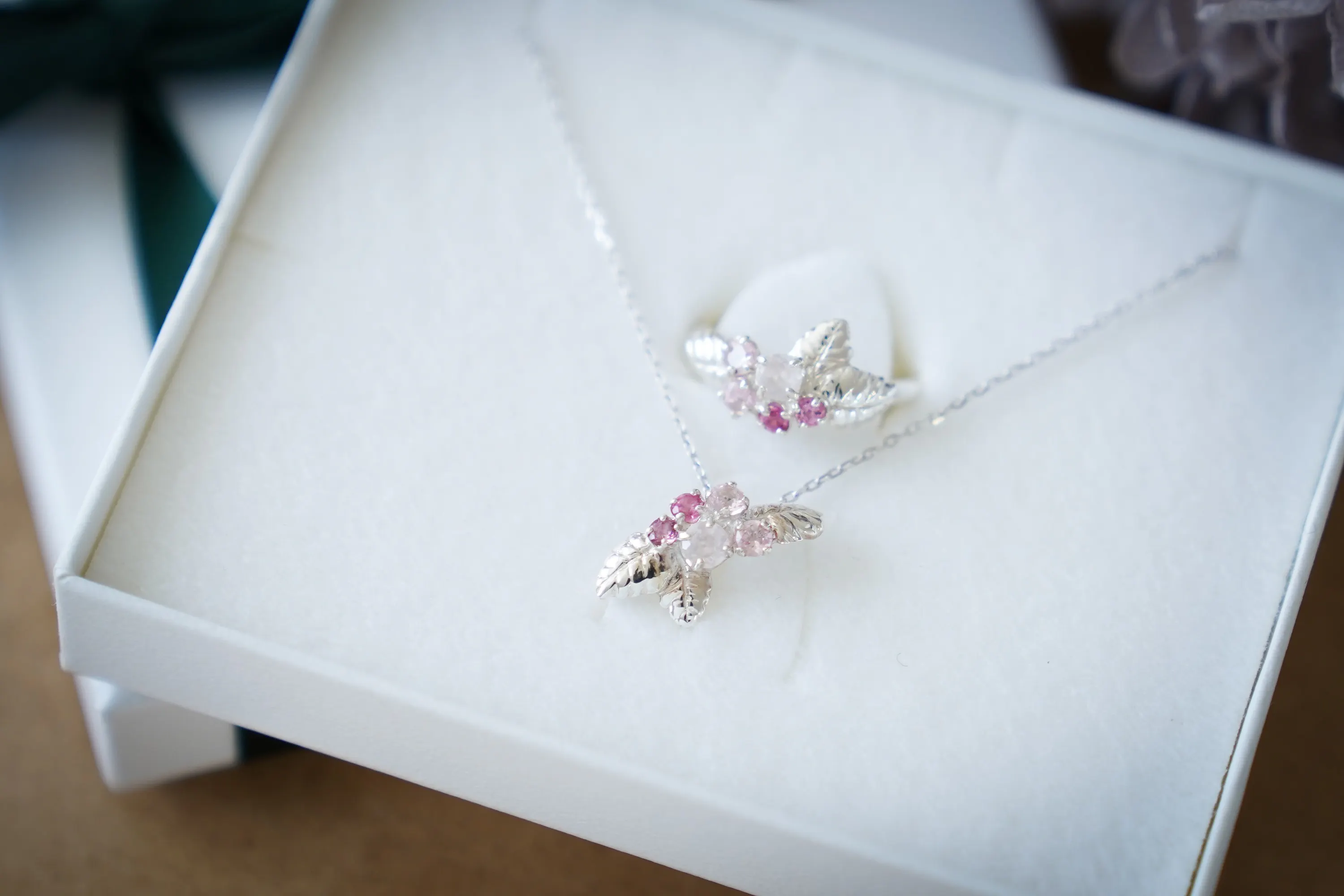 葉っぱはSILVER925でリアルに表現し、まるでアート作品のようなジュエリーが生まれました。