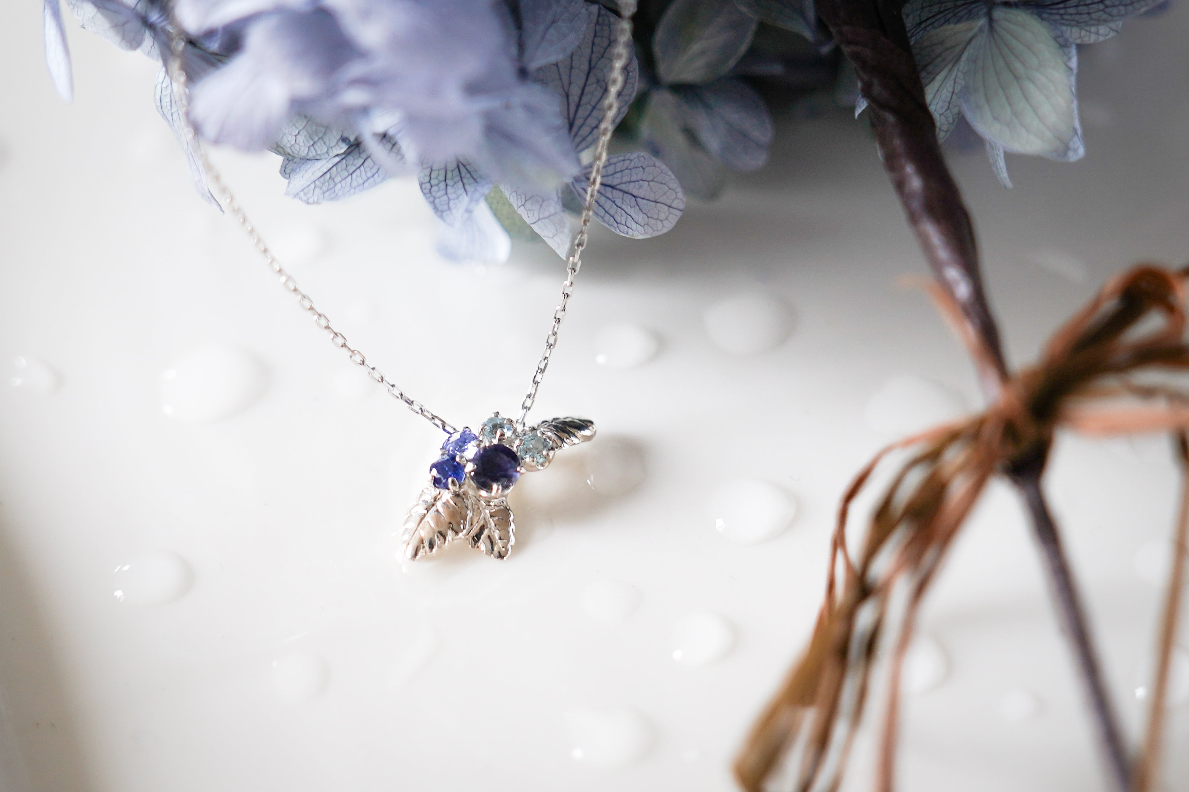 街中で咲き始めている梅雨の訪れを感じる花・アジサイが、鮮やかな天然石とSILVER925で美しいジュエリーに昇華いたしました。
