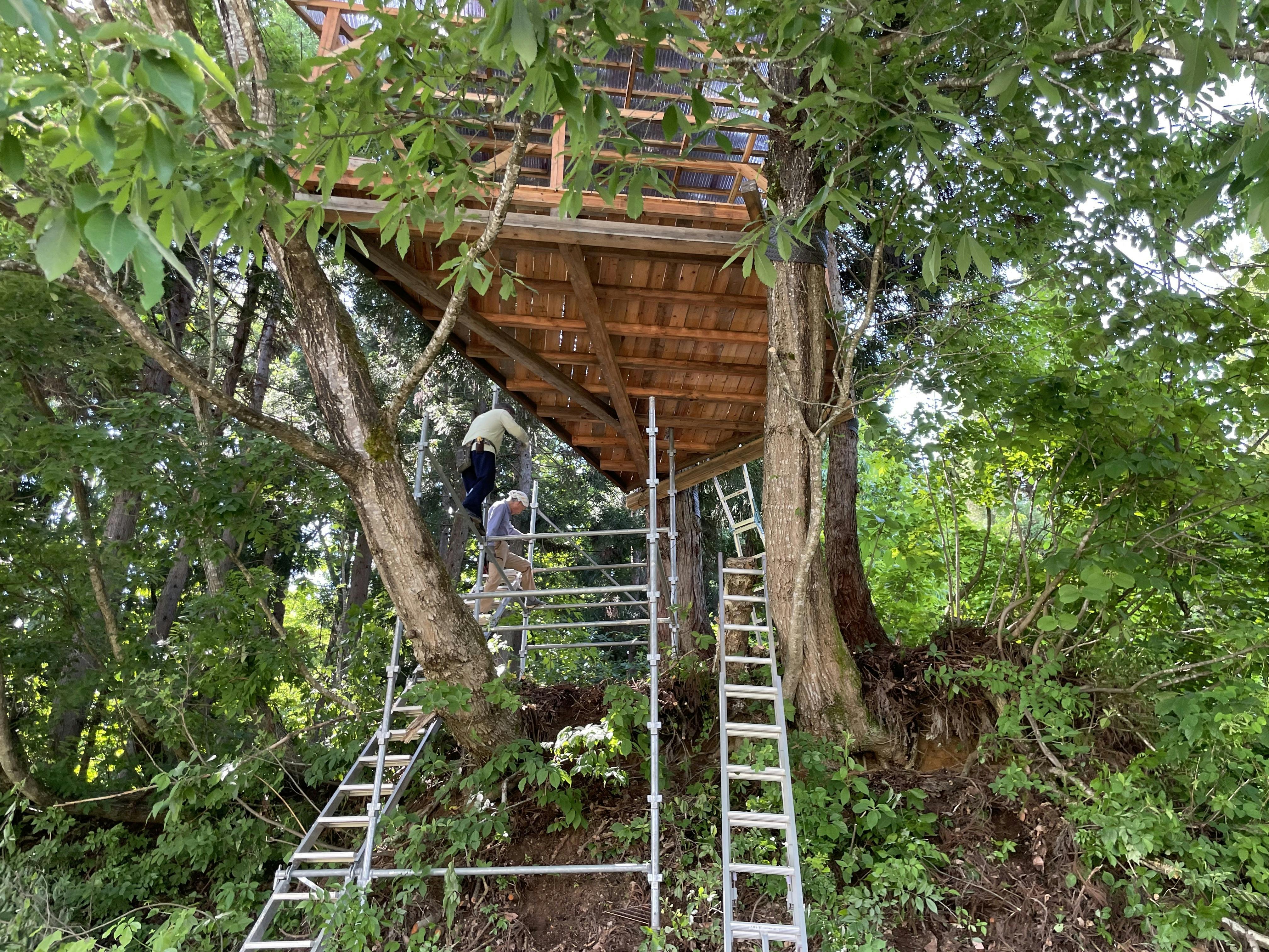 あのクラウドファンディングの終了から、早いもので1ヶ月が経ちました。たくさんのご支援と応援の声に支えられ、ツリーハウスの再建や森の整備作業、日本ミツバチたちの迎え入れを少しずつ進めてきました。倒壊してしまったツリーハウスの跡地には、仲間と共に土台づくりから再スタート。森の中に光が差し込むよう、混み合った木を間伐し、倒した木を使い循環する仕組みも整えています。何よりも嬉しいのは、もう一度この地にミツバチたちが戻ってきてくれていること。まだ以前のようにとはいきませんが、予想を上回る数の群れを迎え入れることができました。ご支援くださった皆さまへお届けするリターンの準備も同時並行で進めていますが、現場での作業が想像以上に時間を要しており、発送が遅れてしまっております。お待たせしてしまっていること、本当に申し訳ありません。ひとつひとつ丁寧に、心を込めて準備をしておりますので、今しばらくお時間をいただけますと幸いです。これからも、再生していく森と、そこに息づく小さな命の物語をお届けしてまいります。引き続き、どうぞあたたかく見守ってください。