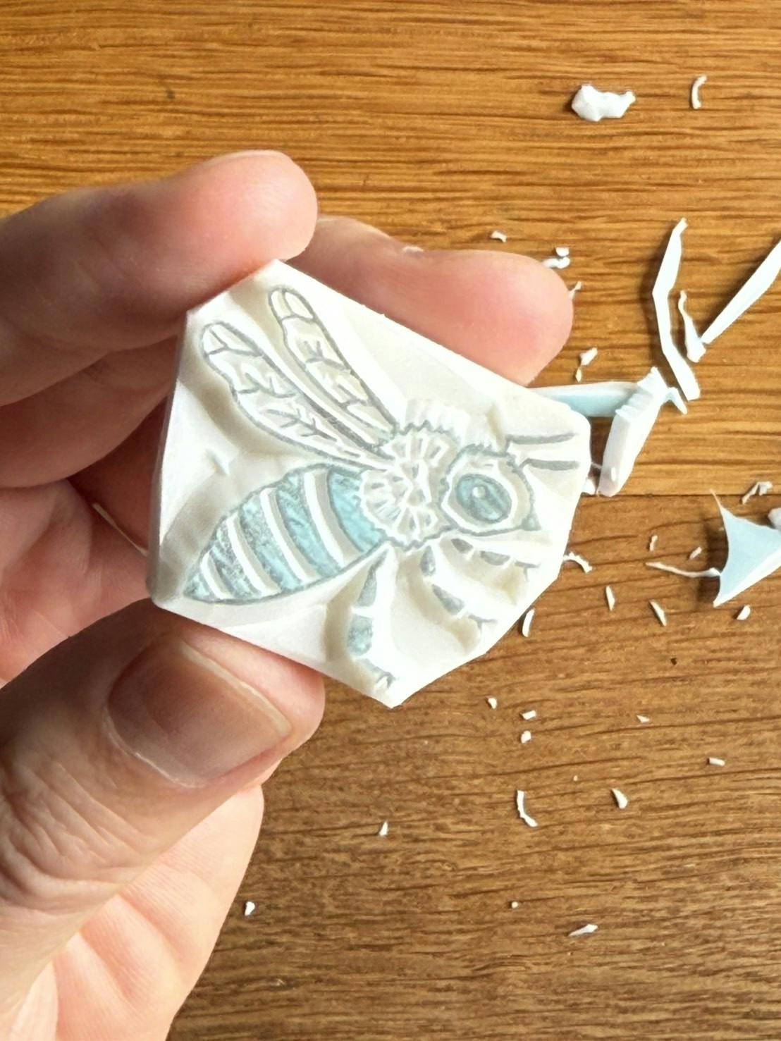 ◆消しゴムはんこ(ミツバチ1個、花1個、巣のパターン柄1個、おまけミツバチ)