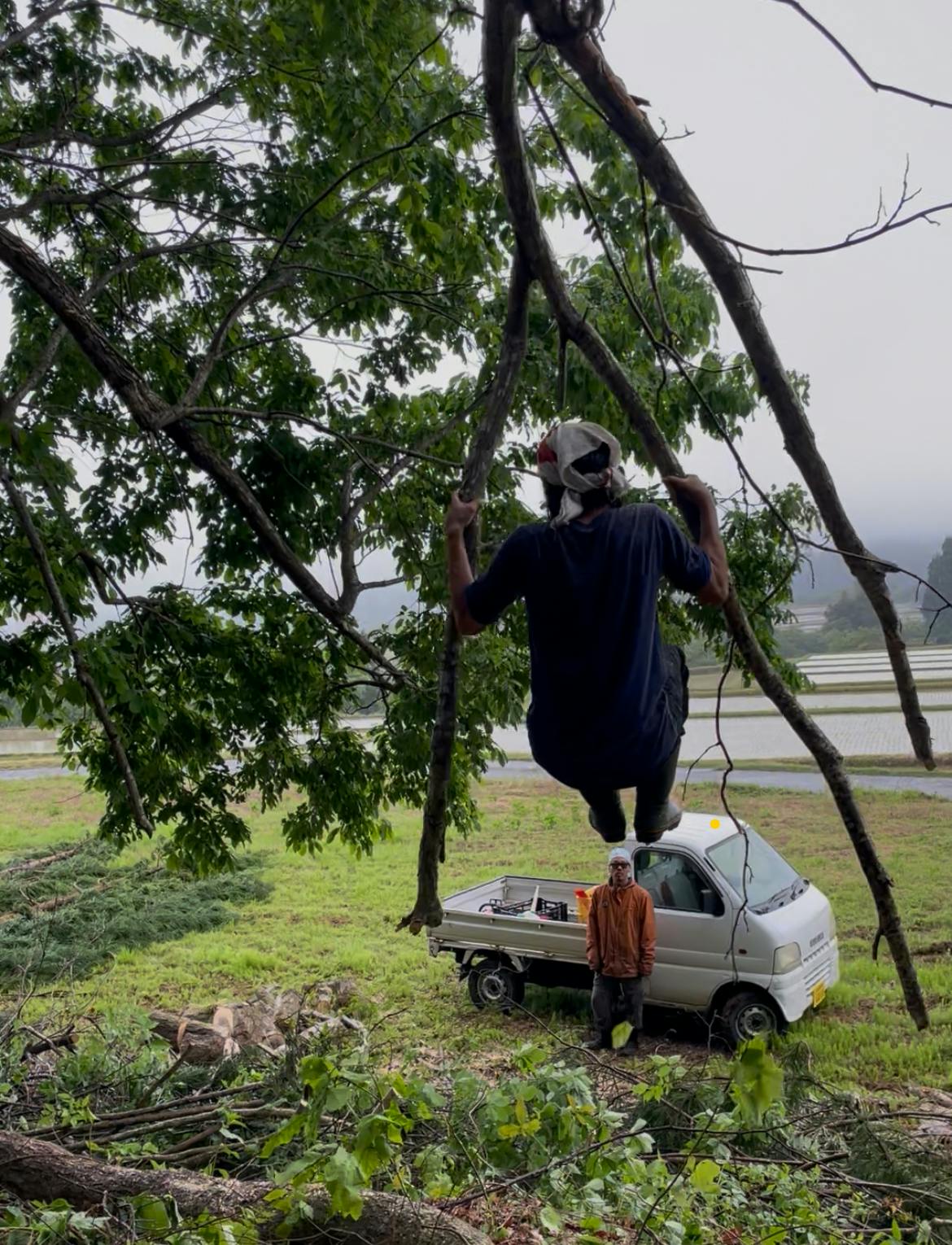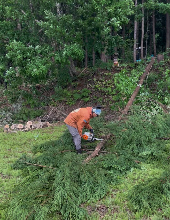 昨日のツリーハウス解体に続き、今日は森の間伐作業を行いました。
