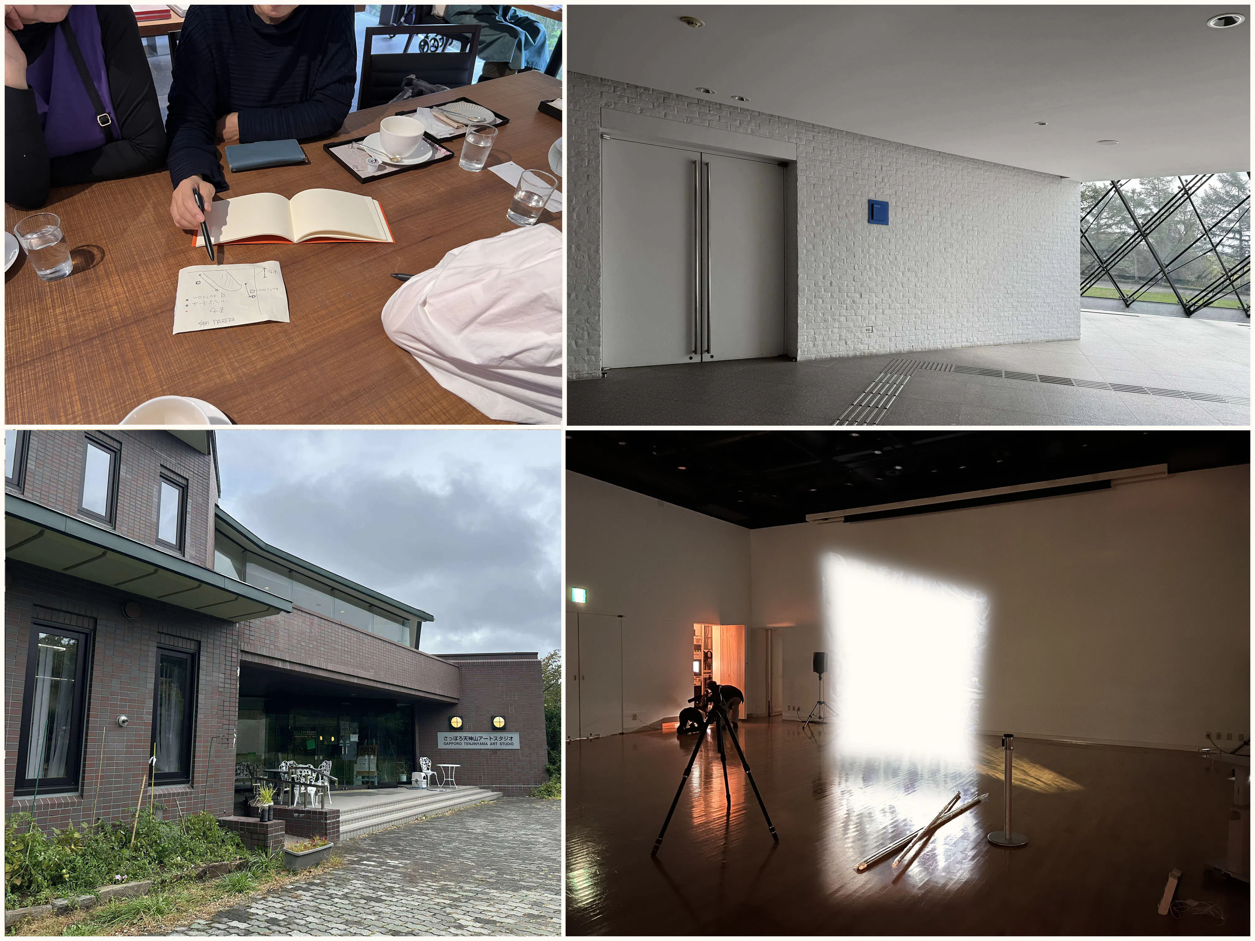 HPF2025コレクティブ展は各種マティリアルを使い表現をする三名のアーティストによる展示になります。東京、神奈川、札幌と各地に住むアーティスト3名が札幌に集合し、レジデンス施設の下見や11月のコレクティブ展会場となるモエレ沼公園ガラスのピラミッドスペース1で実際の展示のリハーサルを致しました。これまで居住地がバラバラで幾度となくZoomでの打ち合わせをしてきましたが、やはり想定外の事象も見つかりリハーサルの重要性が大事である事を確認しました。
