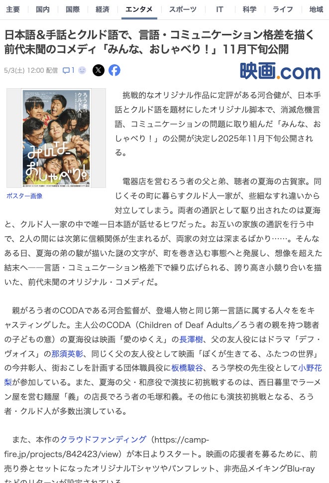 そして、映画.comさんと映画ナタリーさんに取り上げて頂きました!