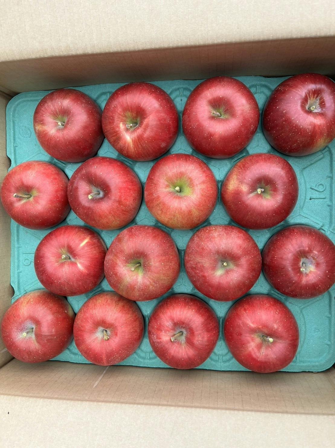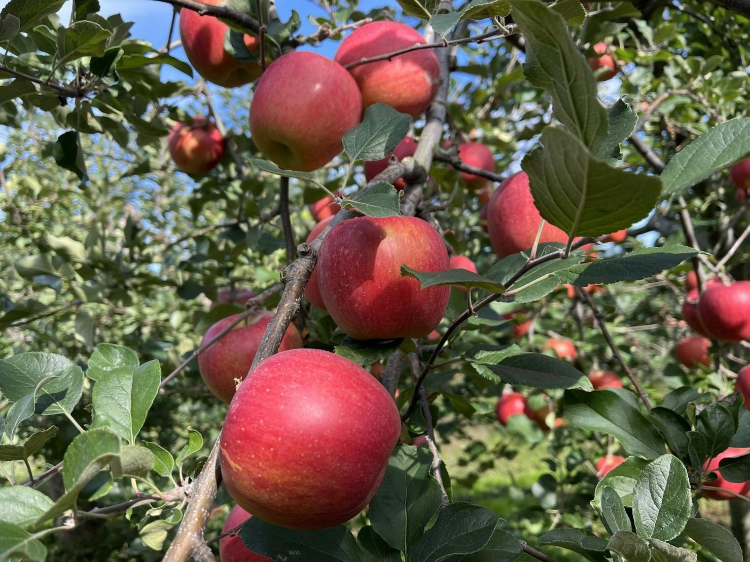 シナノスイートは名前の通り長野県で開発された品種で、“つがる”と“ふじ”をかけ合わせて誕生しました。収穫時期は例年ちょうど“つがる”と“ふじ”の間、りんごのシーズンの中盤である10月中旬あたりです。