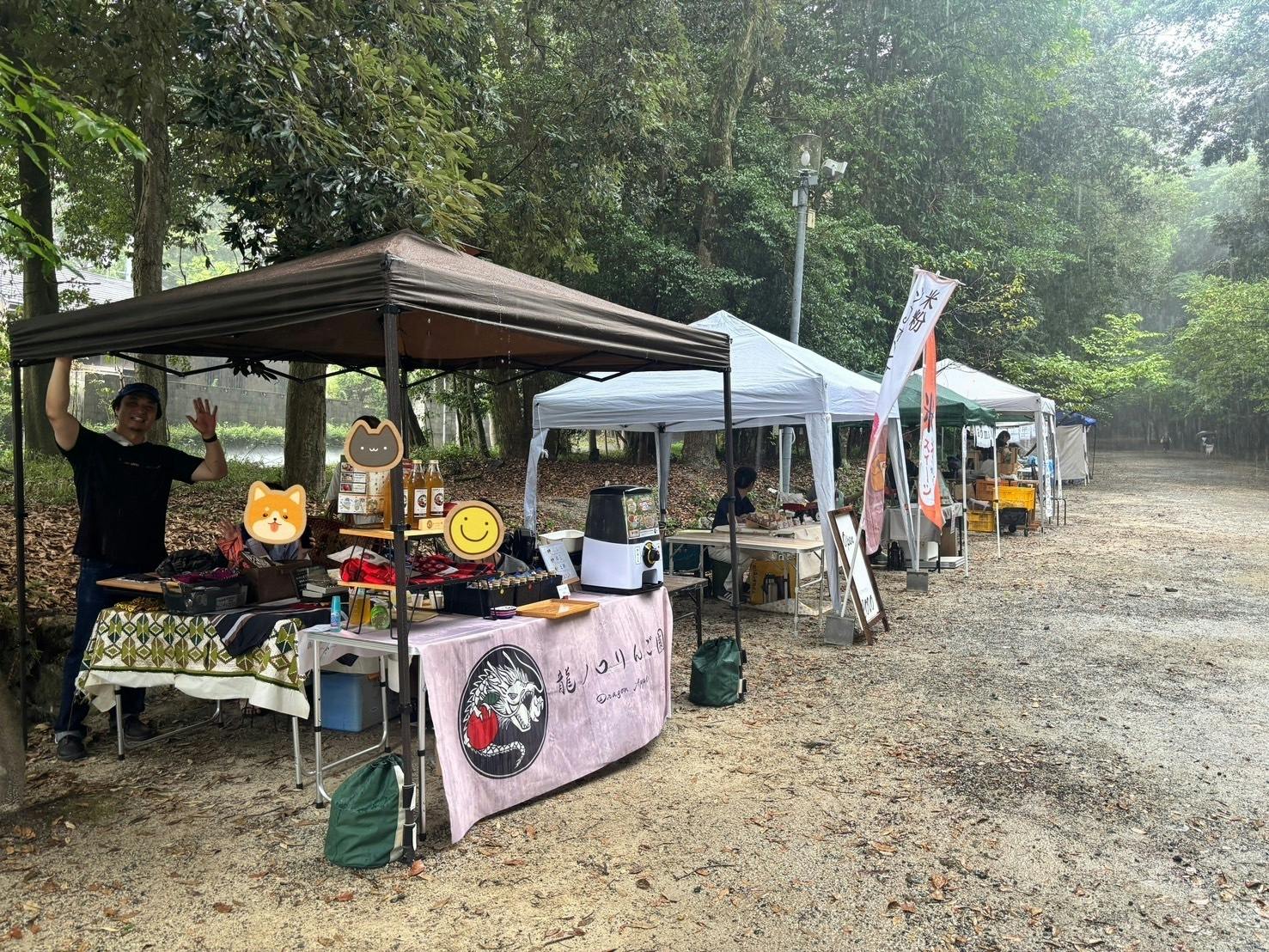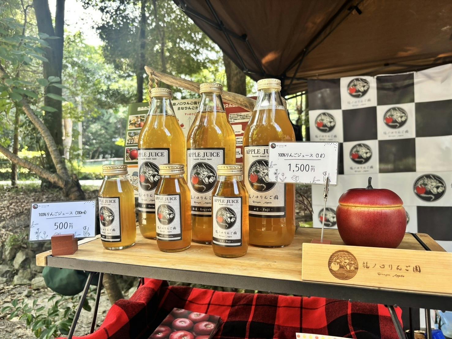 豪雨など避けたいトラブルではありますが、こういう時に助け合ったり深いお話をし合えるのがマルシェ出店の醍醐味だと感じました。今後も龍ノ口りんご園はマルシェ出店を続けていきますので、お近くにお住まいの方はぜひお越しください。
