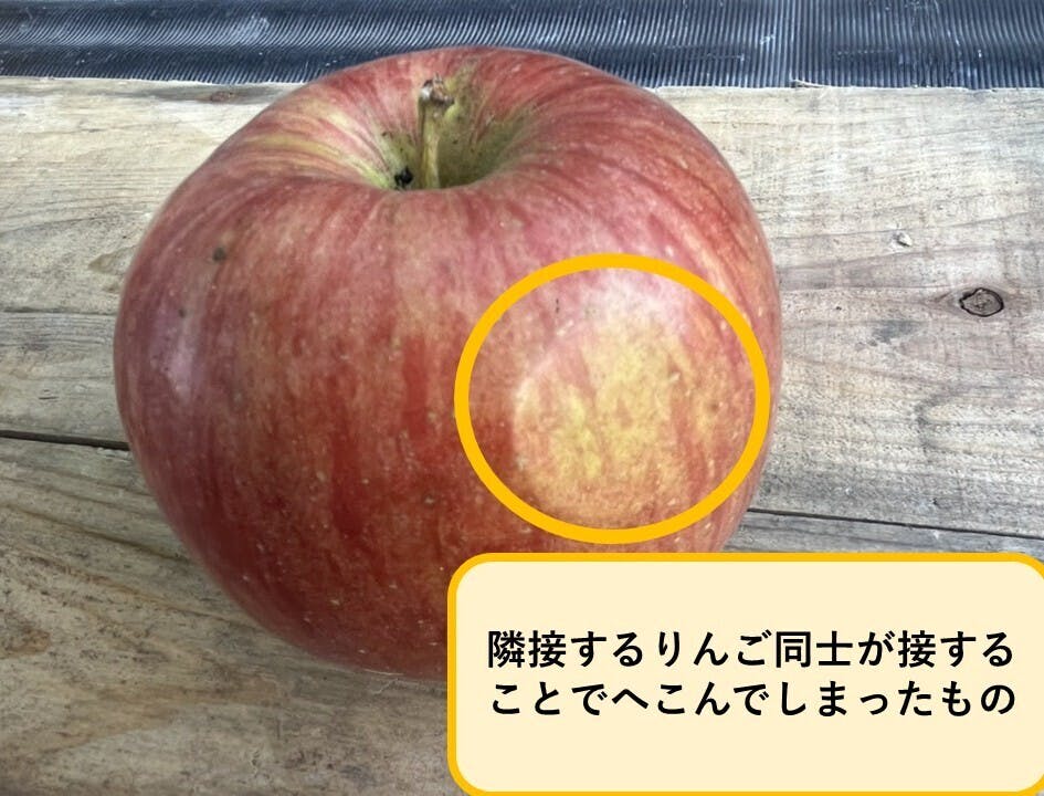 次はこちら。隣接するりんご同士が接することで押し合いになり、へこみができてしまったものです。