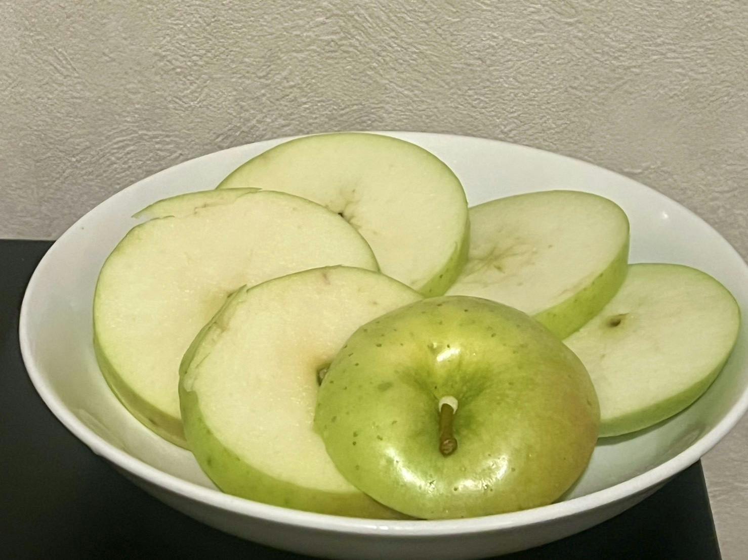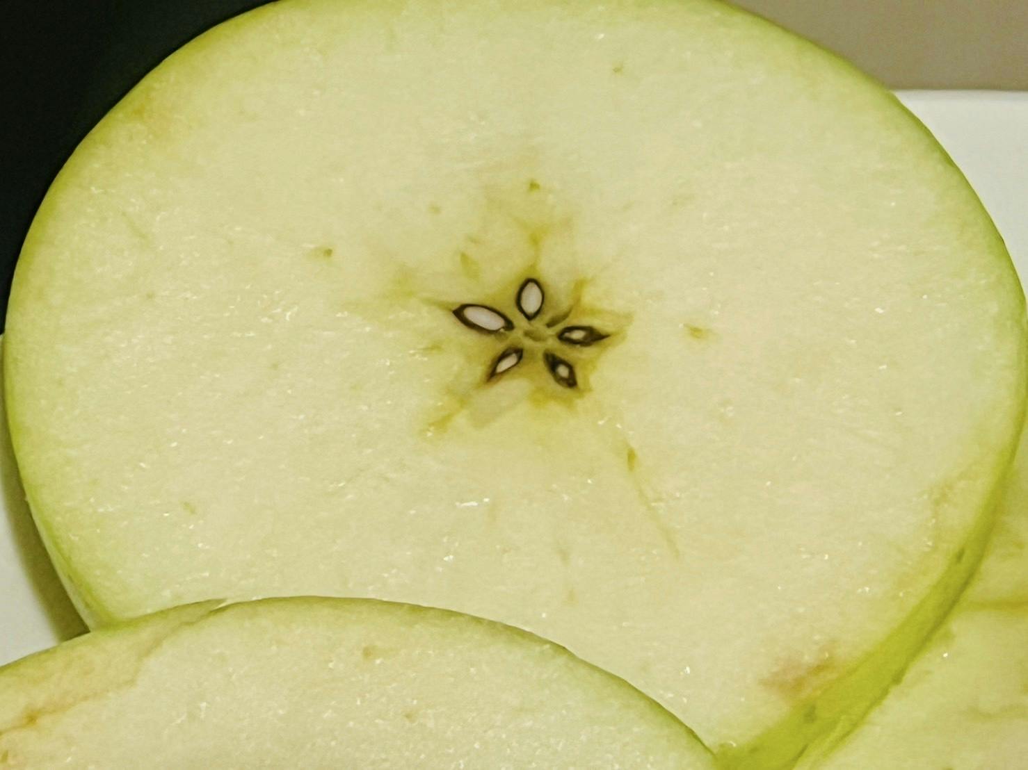 「スターカット」は、りんごを横向きに輪切りにする切り方です。カットした中央の芯の部分が星形に見えることから「スターカット」と呼ばれています。