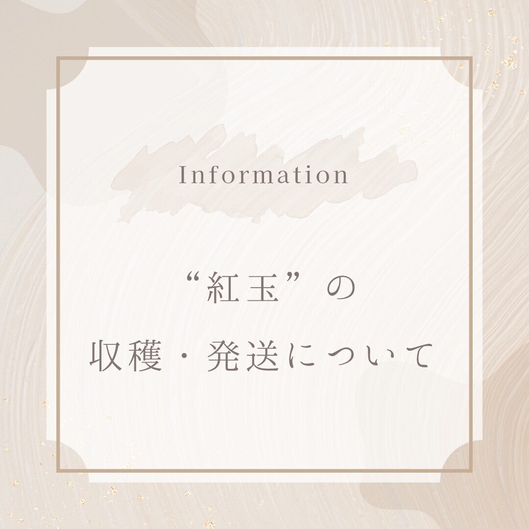 リターン詳細では10/5頃としておりましたが、10月10日より収穫・順次発送予定とさせていただきます。天候の影響で昨年より少々生育が遅くなってしまっています。お待ち頂いている皆様には申し訳ありませんがご理解いただけますと幸いです。