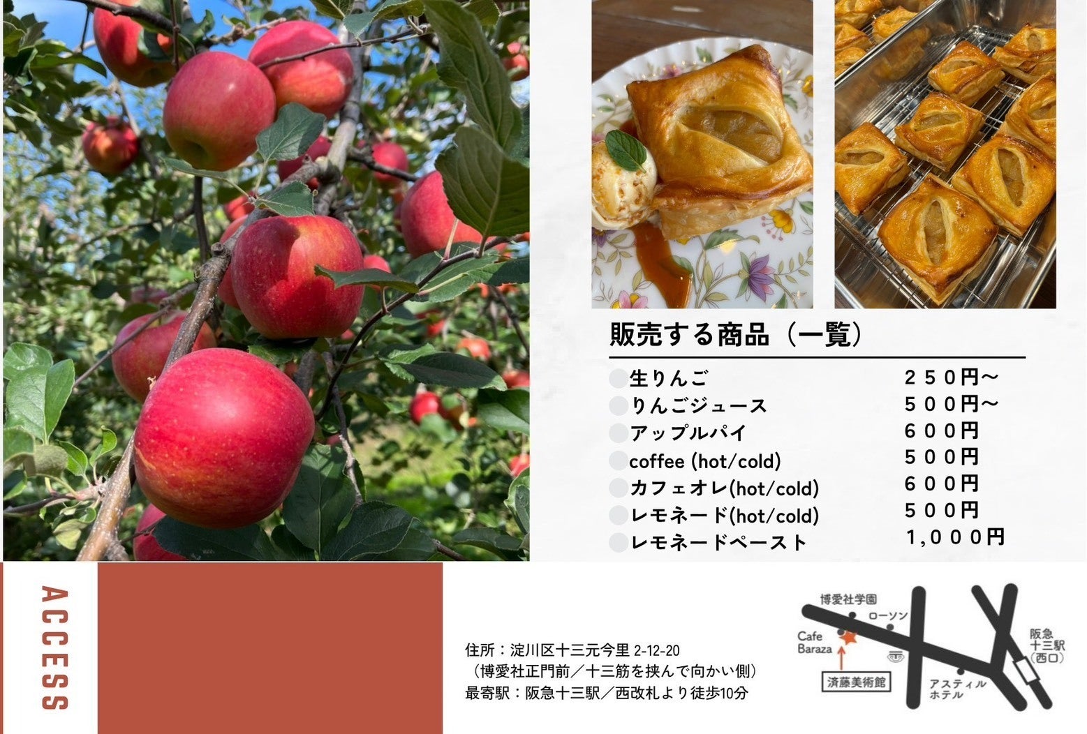 また、同会場には、当園のりんごを使ってアップルパイを作ってくださっている名古屋のカフェ『カルコラーレ』さんにも出店して頂きます。アップルパイのみならず、コーヒーやレモネードも提供してくださいます。