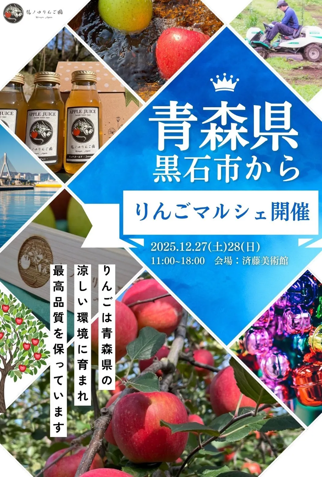 会場は大阪の十三駅から歩いて行ける『済藤美術館』さんです。ご縁があり、昨年も出店させて頂いたのですが、今年もお借りして出店することになりました。当日は青森より、生りんごや今年収穫してできたばかりのジュースを販売する予定です。